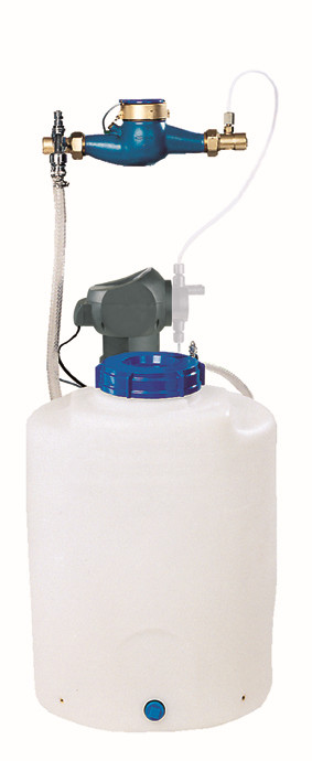elektronische Dosierstation zur Dosierung von gelöstem QUANTOPHOS CuP, mit Kontaktwasserzähler, elektronisch gesteuerter Dosierpumpe, Dosierbehälter, Dosier- und Ansaugleitung, Turbo-Mischsystem, zulässiger Dauerdurchfluss 100 % der max. Durchflussleistung, Betriebsdruck max. 10 bar, Druckverlust bei max. Durchfluss 0,8 bar, Netzanschluss 230 V/50 Hz