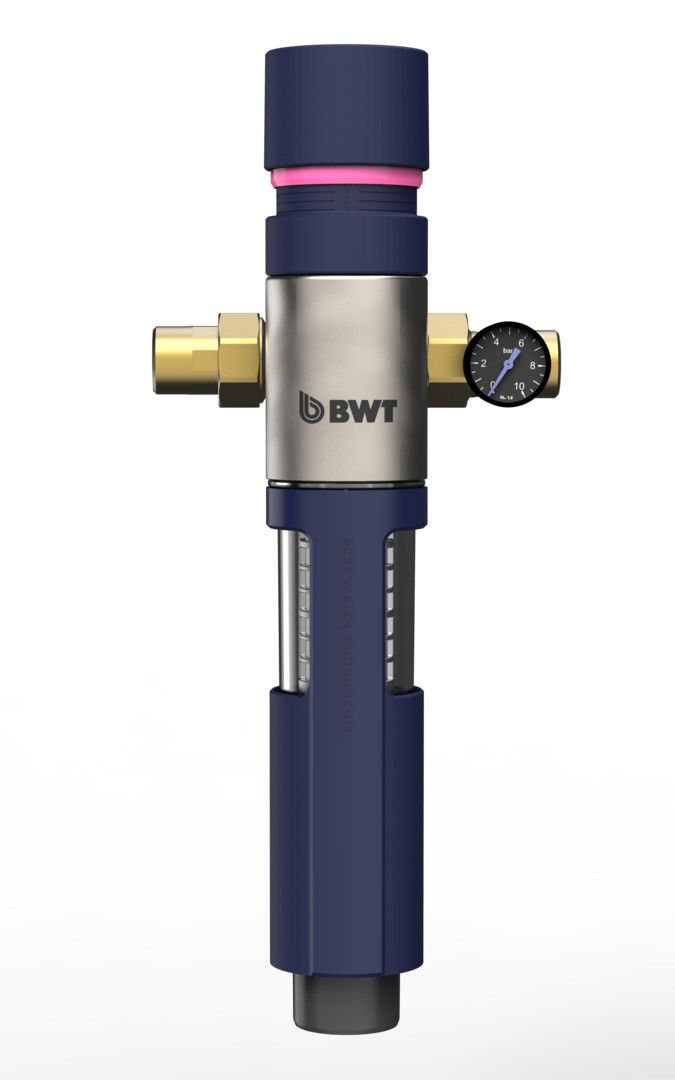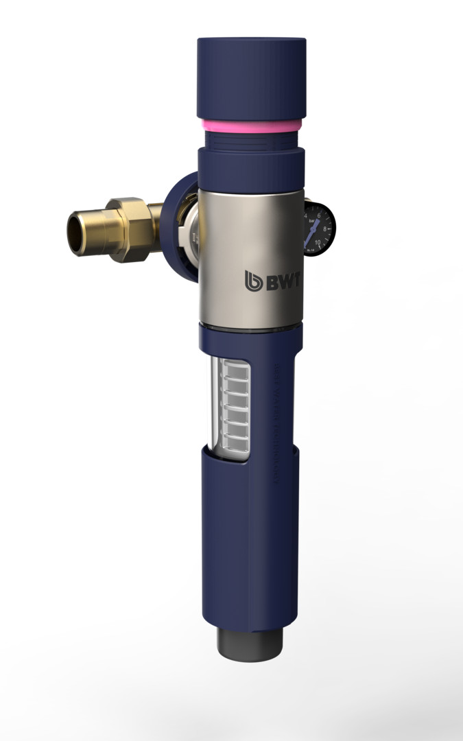 BWT MACH HWS 1" ist eine manuelle Rückspülfilter-Hauswasserstation mit integriertem Druckminderer für den waagrechten und senkrechten Einbau in die Trinkwasserleitung, mit Schnellverschlusstechnik, bleifrei