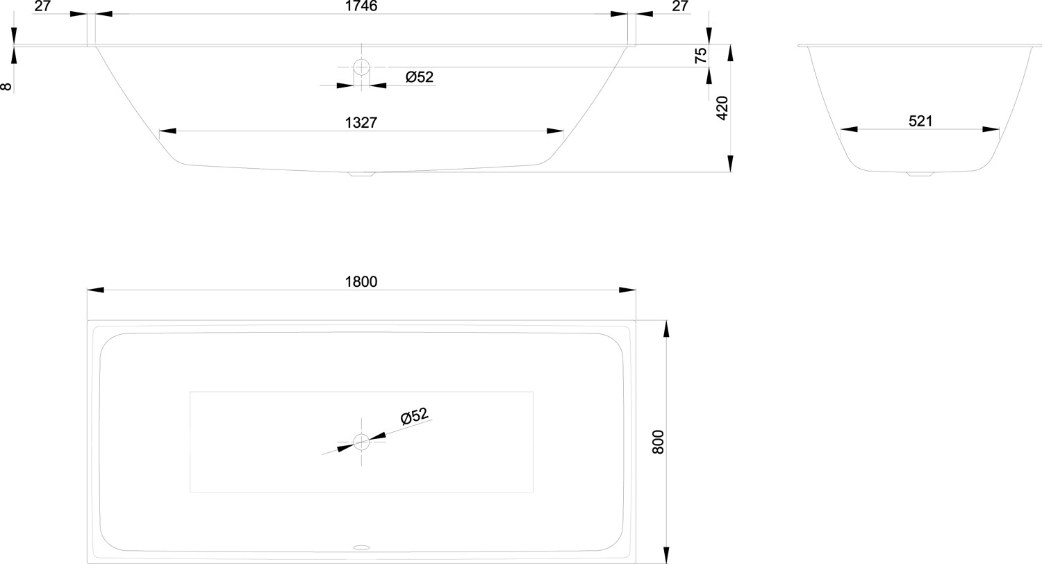Badewanne BetteLoft 3172 180x80x42cm, weiß W75502