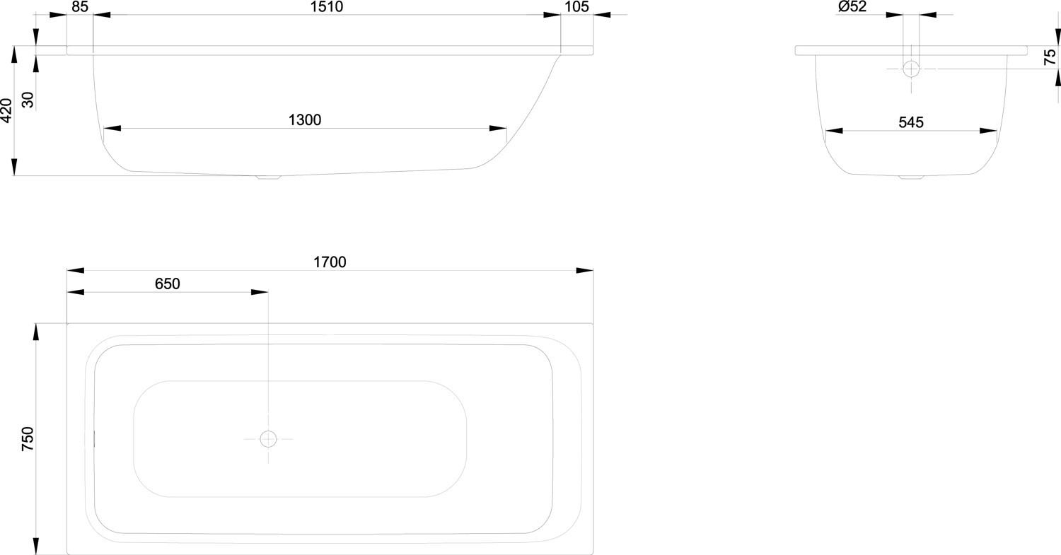 Badewanne BetteSelect 3412 170x75x42cm, manhattan
