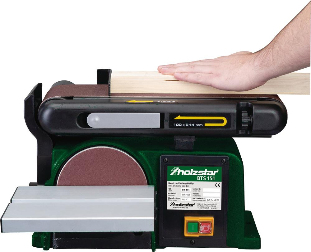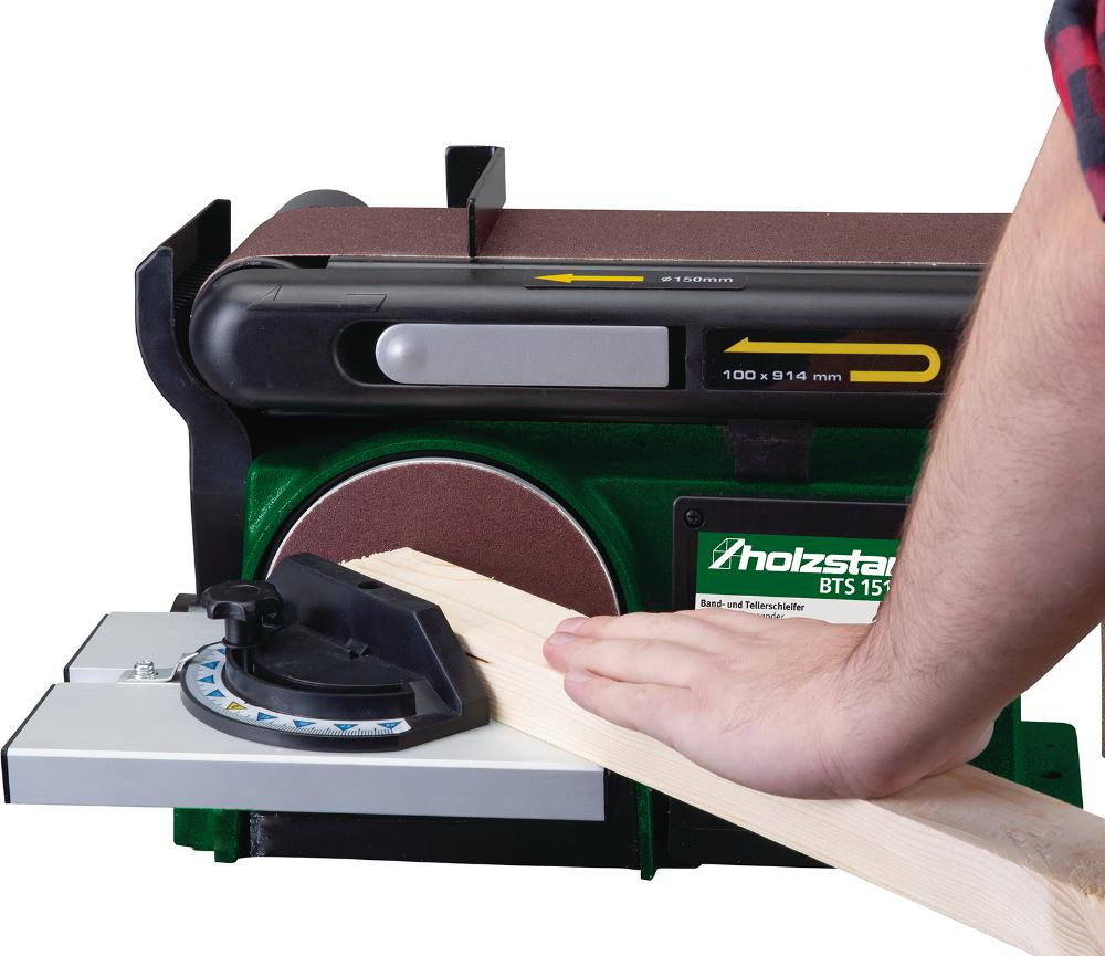 Lieferung: Mit Gehrungsanschlag, Schleifband Korn 80, Schleifscheibe Korn 80.