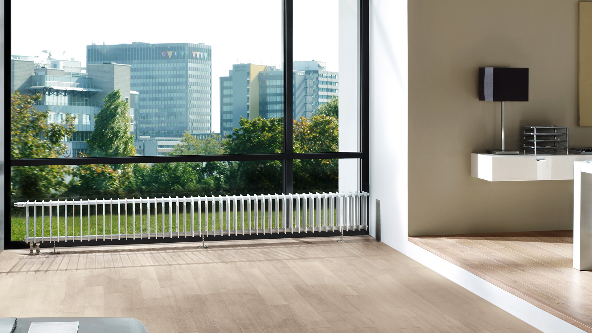 aus horizontalen Rundrohren 35 mm, Wandstärke 1,5 mm, und senkrechten Flachovalrohren 60 x 10 mm Wandstärke 1,5 mm, im Widerstandsschweißverfahren verbunden, Elementbaulänge 40 mm (wahlweise 30, 50 und 60 mm), alle Profile mit rundum glatter Oberfläche, geeignet für Gesundheitseinrichtungen mit besonderen Anforderungen, bei serienmäßiger Anschlussgröße DN 15 werden nicht für Vor- und Rücklauf verwendete Anschlüsse mit Entlüftungsstopfen oben und Blindstopfen unten verschlossen, Oberfläche pulverbeschichtet DIN 55900 und bei ca. 180 °C eingebrannt, Standardfarbton weiß 9016, wahlweise andersfarbig gemäß BEMM-Farbpalette, entspricht den Richtlinien der gesetzlichen Unfallversicherer (GUV), zugelassen für Schulen und Kindergärten, ausgezeichnet für die Erfüllung hoher hygienischer Anforderungen für den Einsatz in Krankenhausbereichen, Wärmeleistungen nach DIN EN 442-2, von einem anerkannten Prüfinstitut gemessen, CE-Leistungserklärung nach EU-BauPVo, Heizmedium Wasser max. zul. Betriebstemperatur 100 °C, max. zul. Betriebsüberdruck 6 bar, mit voreinstellbarem Einbauventil oben seitlich links oder rechts, für Thermostatanschluss M 30 x 1,5 mm, Anschlüsse von/nach unten, wahlweise gleichseitig oder mittig IG DN 15 x 50 mm, mit erforderlicher Blind- und Entlüftungsstopfen, Hahnblock bauseits