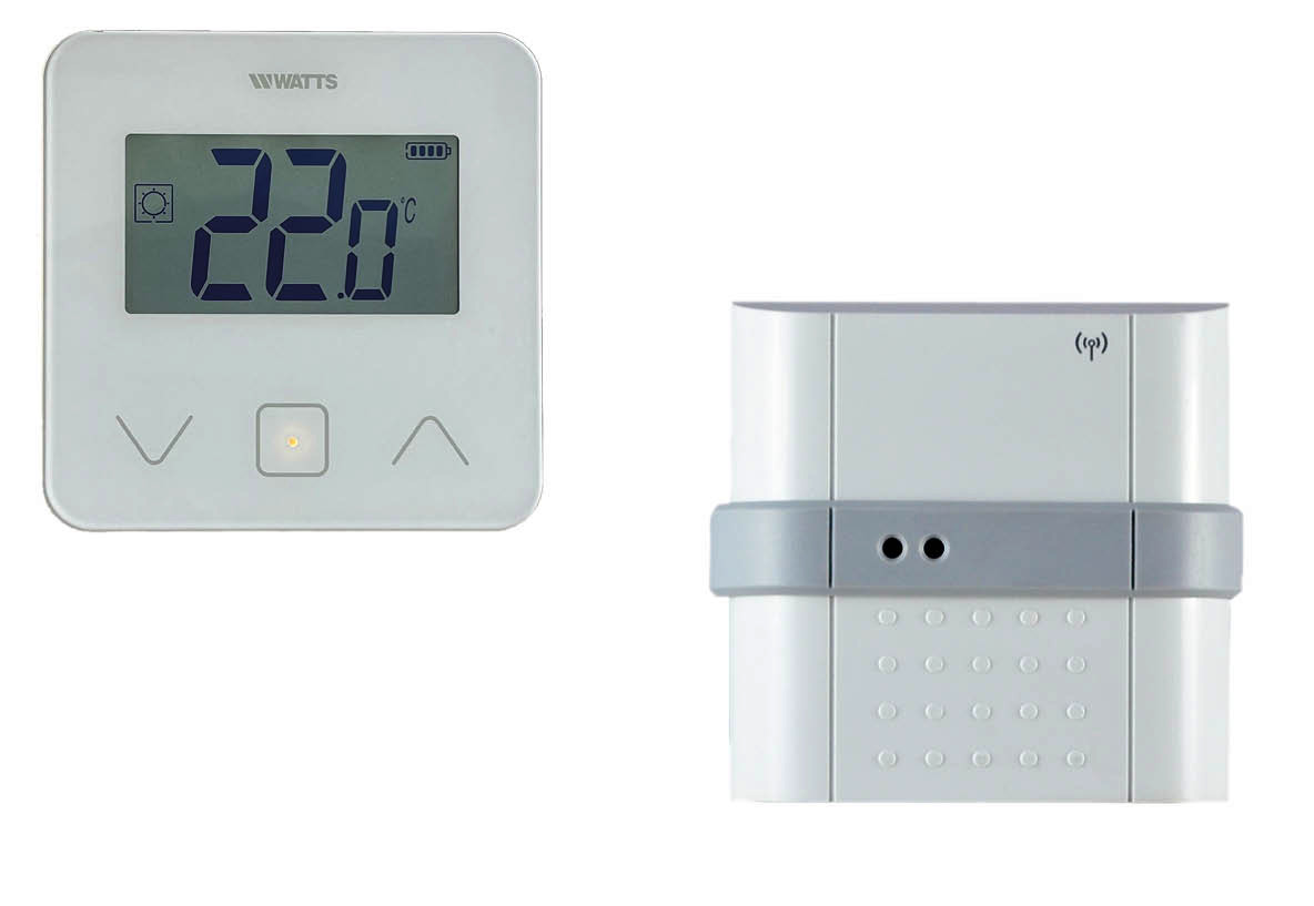 bestehend aus Funk-Raumthermostat digital, mit Ein-/Aus-Schalter, Einstellbereich 5-35 °C, IP30, mit 2 Batterien Typ AAA 1,5 V, Gehäuse weiss, Maße 83 x 80 x 27 mm (BxHxT), sowie Funk-Empfänger, zur Montage und Anschluß auf UP-Dose, Klasse 2, 230 VAC, max. Schaltleistung 16 A, IP20, Gehäuse weiss, Maße 87 x 87 x 20 mm (BxHxT), passend zu Funk-Raumthermostat und Funk-Uhrenraumthermostat
