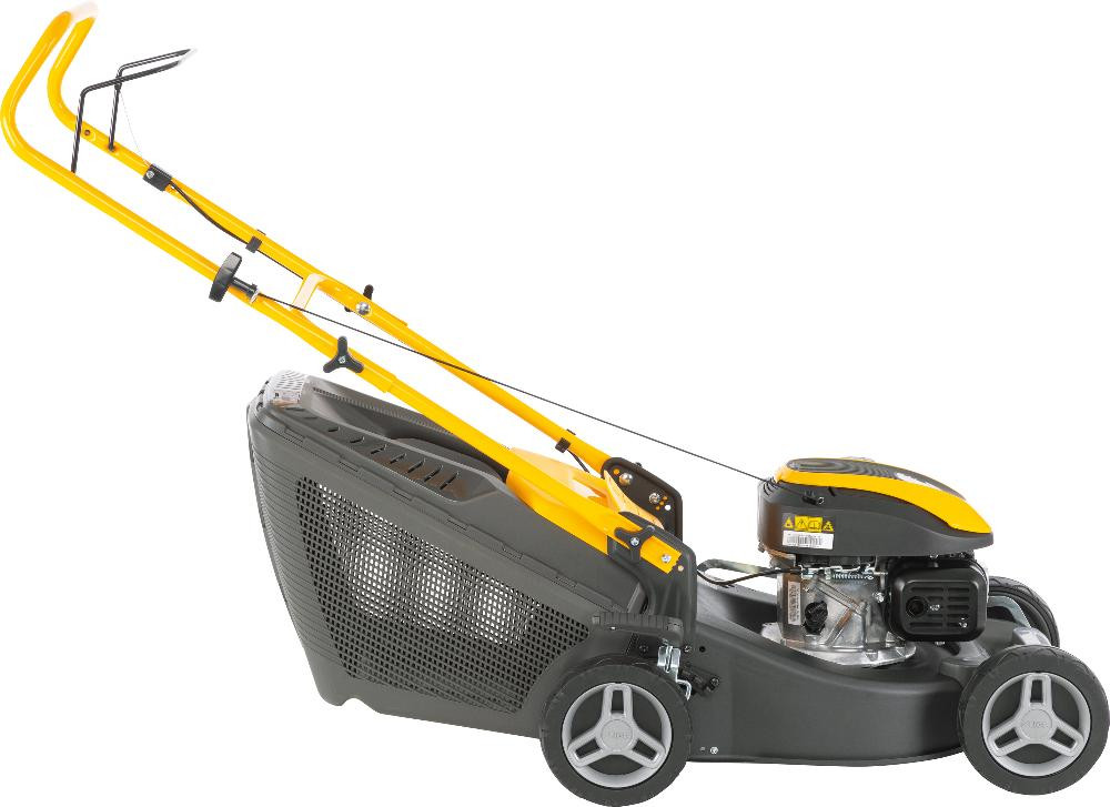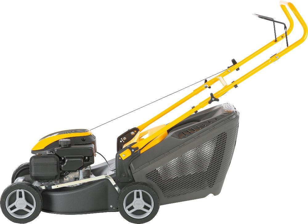 Beim Rasenmäher STIGA Collector ohne Radantrieb lassen sich per Hebel die 6 Schnitthöhen zentral einstellen.