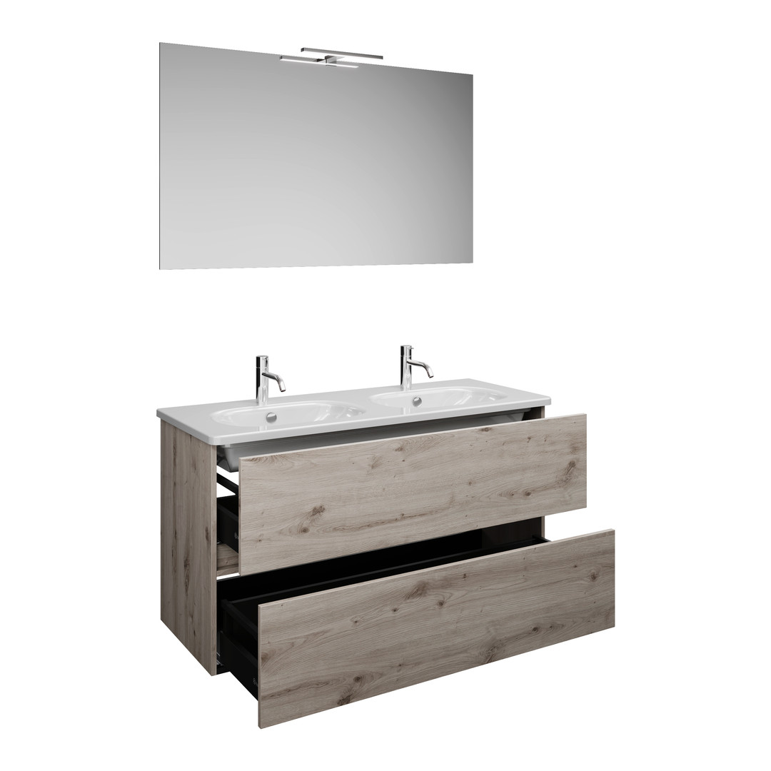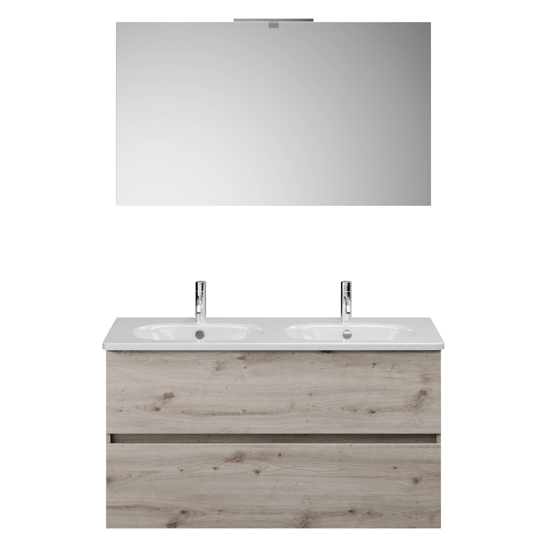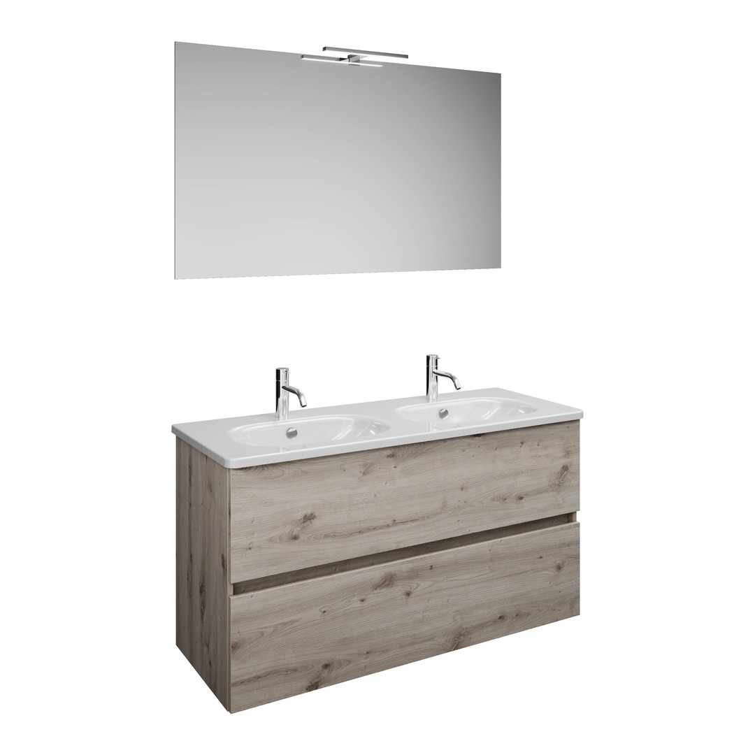 Burgbad Doppelwaschtisch-Kombination Rocio 120,5x200x46,5cm, mit Spiegel, Eiche Dekor Urban W516018