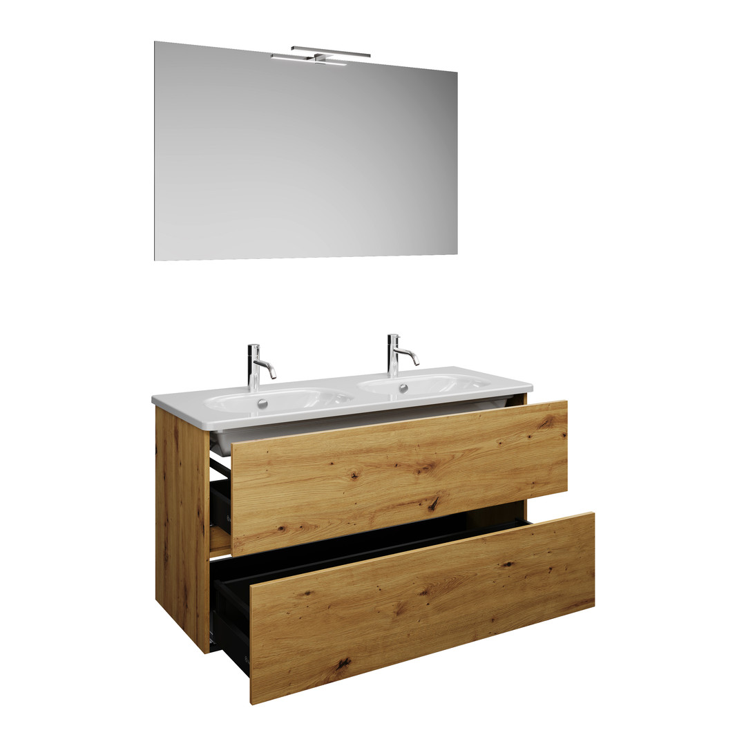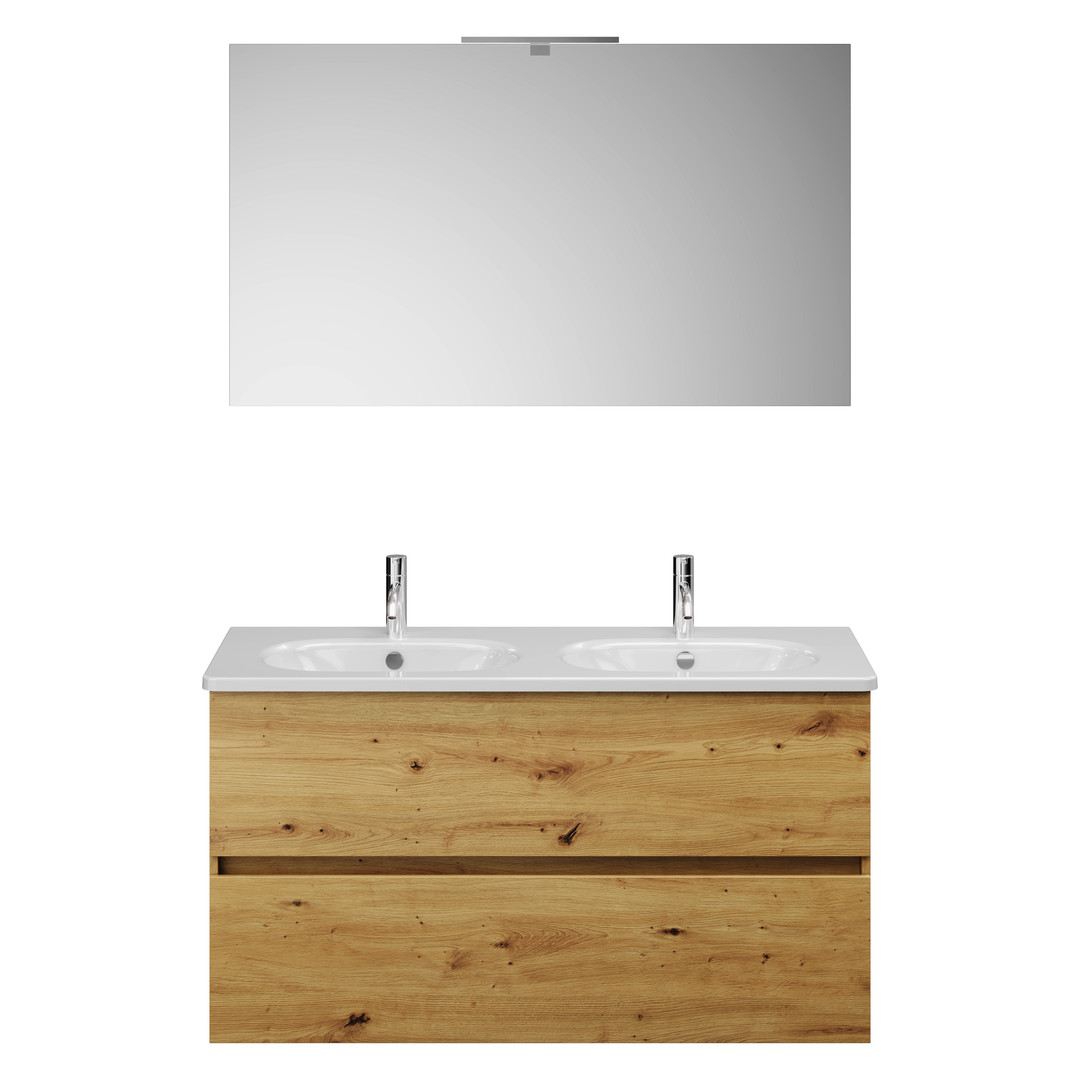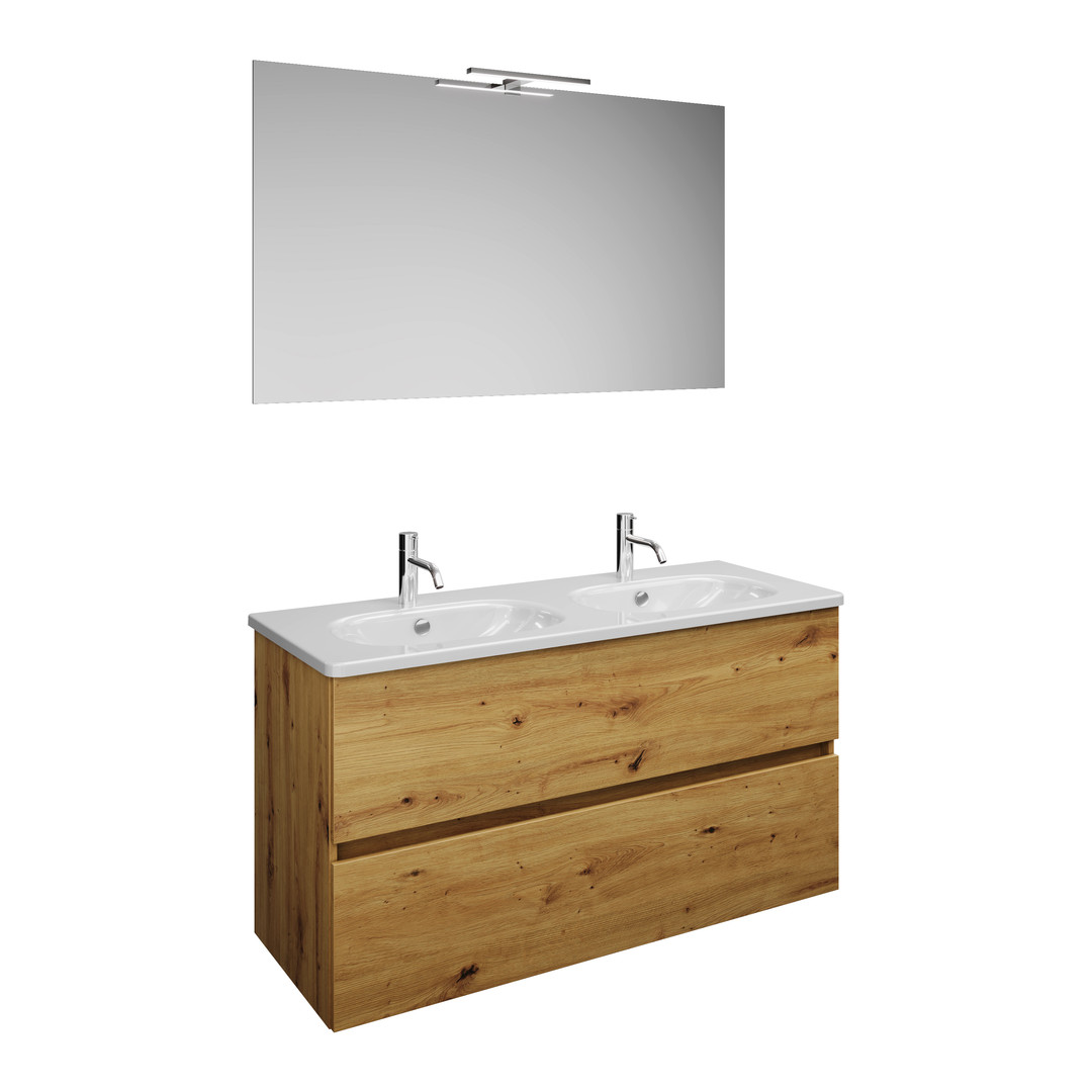Burgbad Doppelwaschtisch-Kombination Rocio 120,5x200x46,5cm, mit Spiegel, Eiche Dekor Urban
