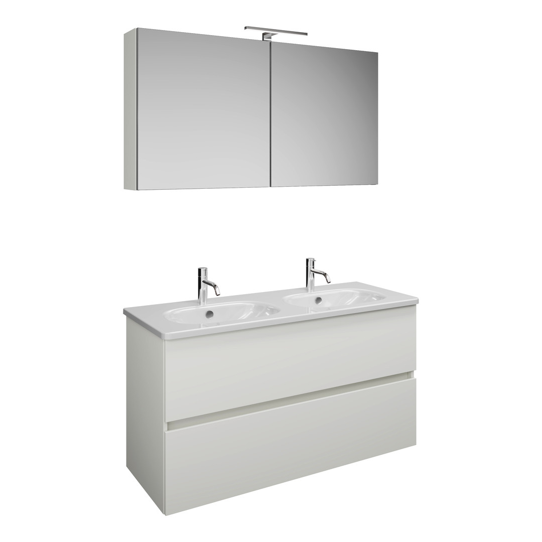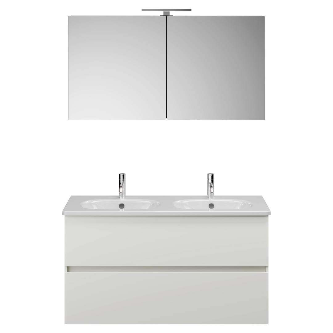 Burgbad Doppelwaschtisch-Kombination Rocio 120,5x200x46,5cm, mit Spiegelschrank, Weiß Matt W516020
