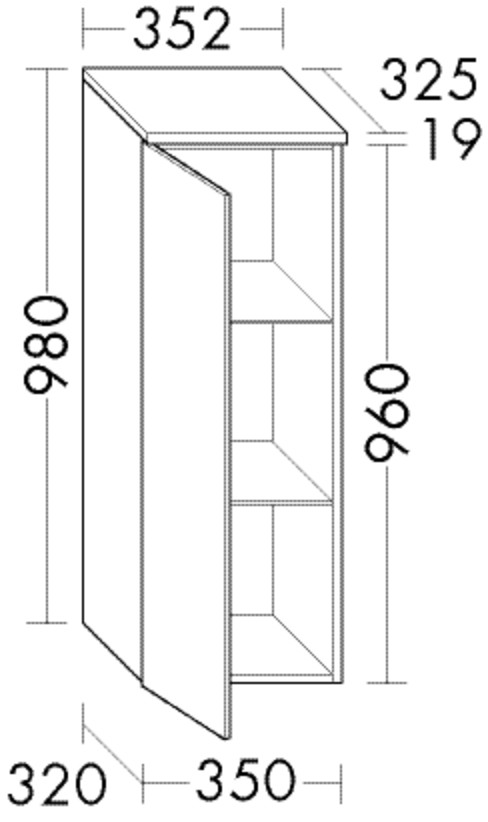 Burgbad Halbhoher Schrank Yumo 35,2x98x32,5cm, 1 Tür, Melamin W507863