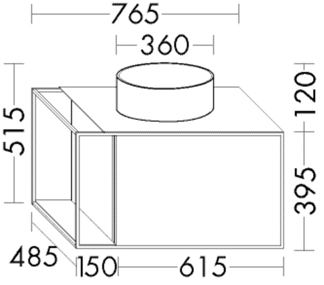 Waschtisch: Muldentiefe 100 mm, Beckenmaß 360 mm, rund, Unterschrank: Konsolenplatte weiß, 1 Auszug, 350 mm tief, 1 Ablageplatte unten, weiß, 1 Handtuchhalter, Alurahmen schwarz eloxiert, mit Raumsparsiphon