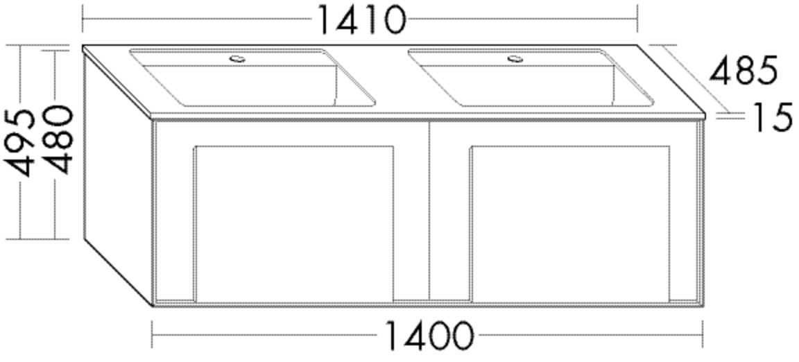 Burgbad Keramik Waschtisch-Unterschrank-Set Moto 141x41x49,5cm, 2 Auszüge, Melamin W911775