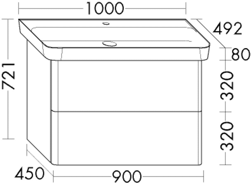 Burgbad LED Keramik-Waschtisch Unterschrank-Set Iveo 100 x 72,1 x 49,2 cm, Thermo, 2 Auszüge, mit LED-Griffleistenbeleuchtung W507720