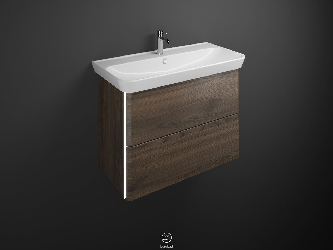 Burgbad LED Keramik-Waschtisch Unterschrank-Set Iveo 80 x 72,1 x 49,2 cm, Thermo, 2 Auszüge, mit LED-Griffleistenbeleuchtung W507719