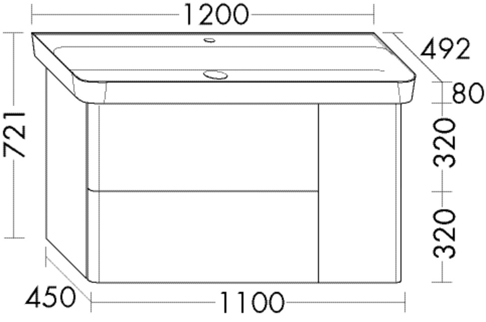 Burgbad LED Keramik-Waschtisch Unterschrank-Set Iveo 120 x 72,1 x 49,2 cm, Thermo, 1 Tür, 2 Auszüge, LED-Griffleistenbeleuchtung W507725