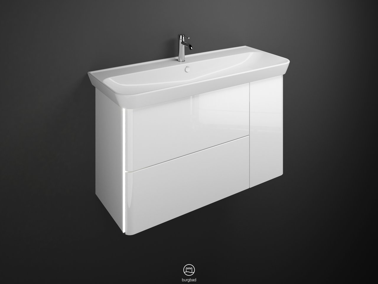 Burgbad LED Keramik-Waschtisch Unterschrank-Set Iveo 120 x 72,1 x 49,2 cm, Thermo, 1 Tür, 2 Auszüge, LED-Griffleistenbeleuchtung