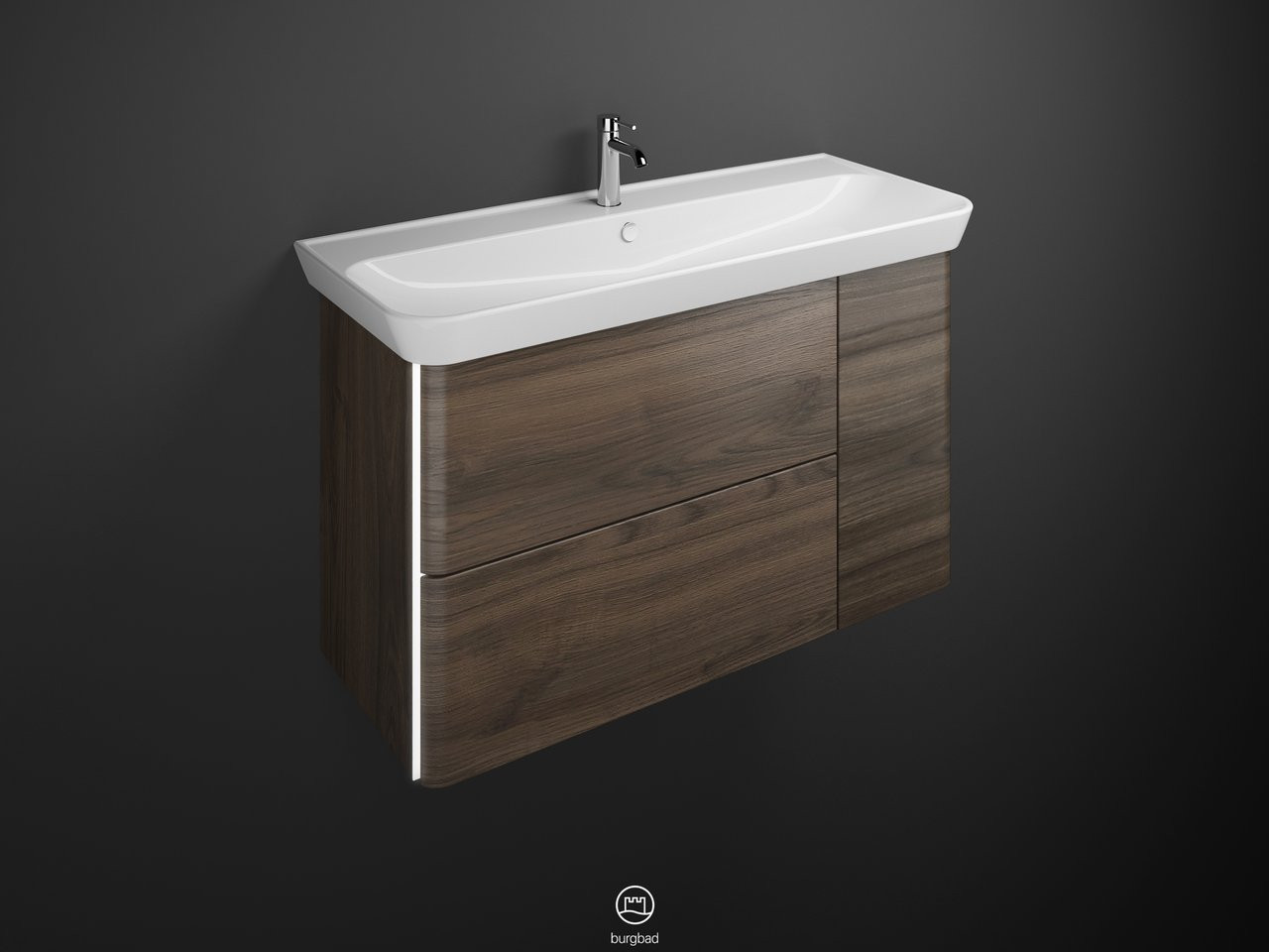 Burgbad LED Keramik-Waschtisch Unterschrank-Set Iveo 100 x 72,1 x 49,2 cm, Thermo, 1 Tür, 2 Auszüge, LED-Griffleistenbeleuchtung W507724