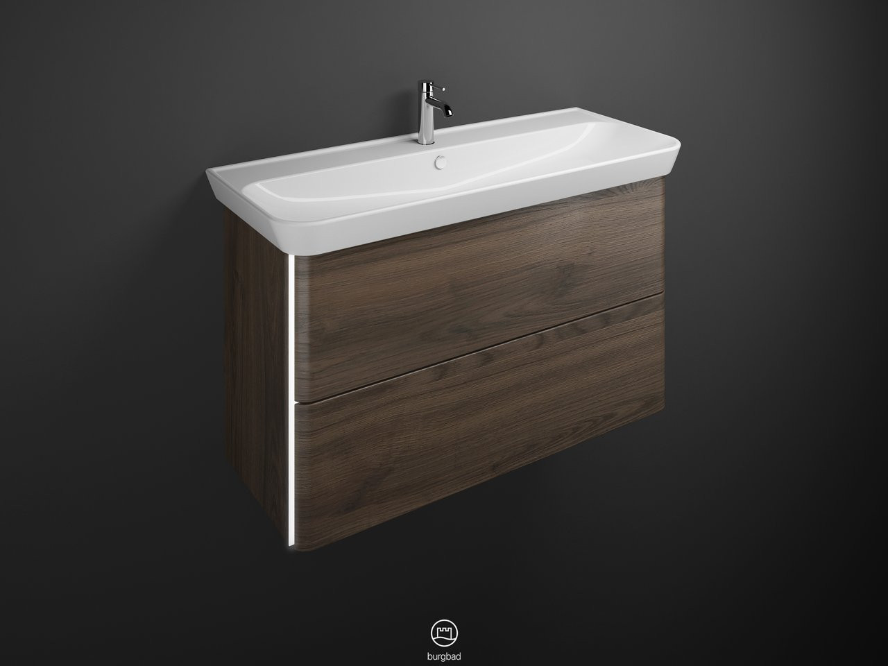 Burgbad LED Keramik-Waschtisch Unterschrank-Set Iveo 100 x 72,1 x 49,2 cm, Thermo, 2 Auszüge, mit LED-Griffleistenbeleuchtung W507720