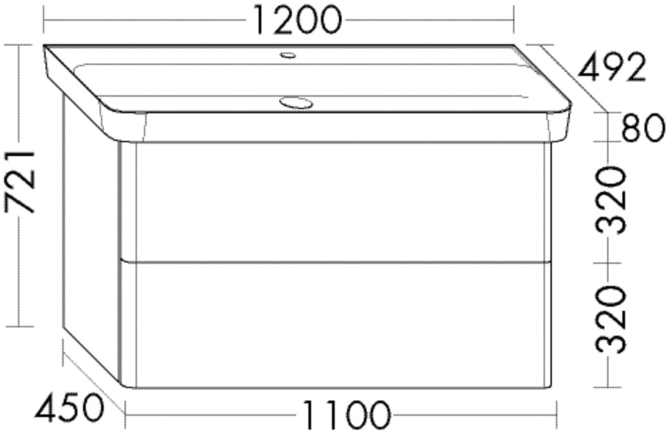 Burgbad LED Keramik-Waschtisch Unterschrank-Set Iveo 120 x 72,1 x 49,2 cm, Thermo, 2 Auszüge, mit LED-Griffleistenbeleuchtung W507721