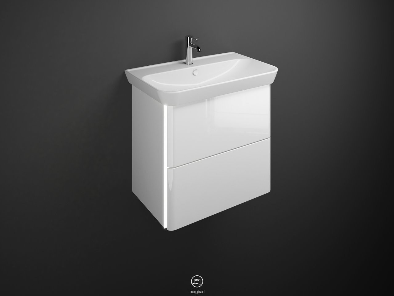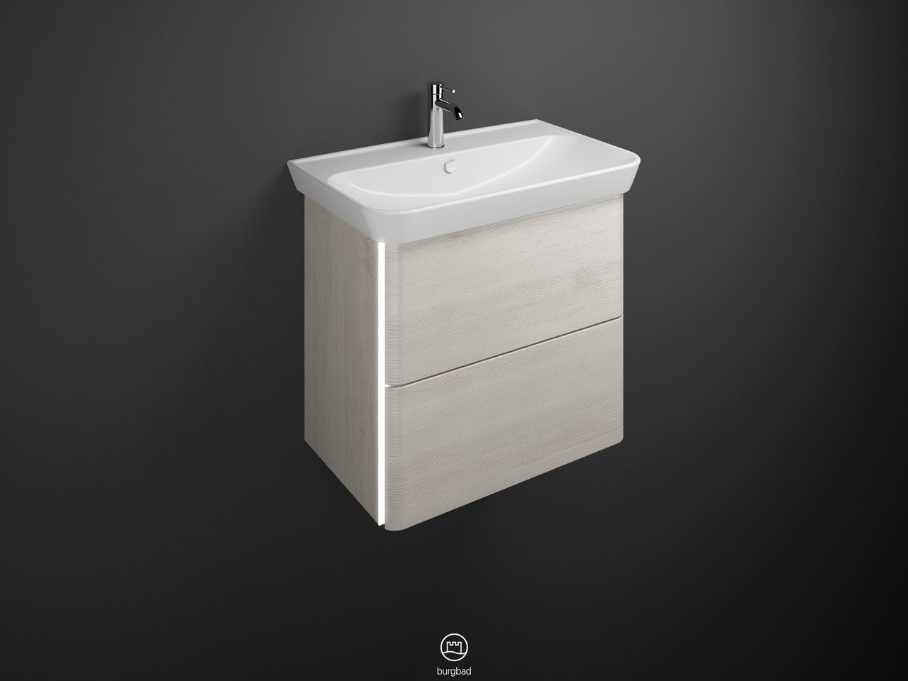 Burgbad LED Keramik-Waschtisch Unterschrank-Set Iveo 65 x 72,1 x 49,2 cm, Thermo, 2 Auszüge, mit LED-Griffleistenbeleuchtung W507718