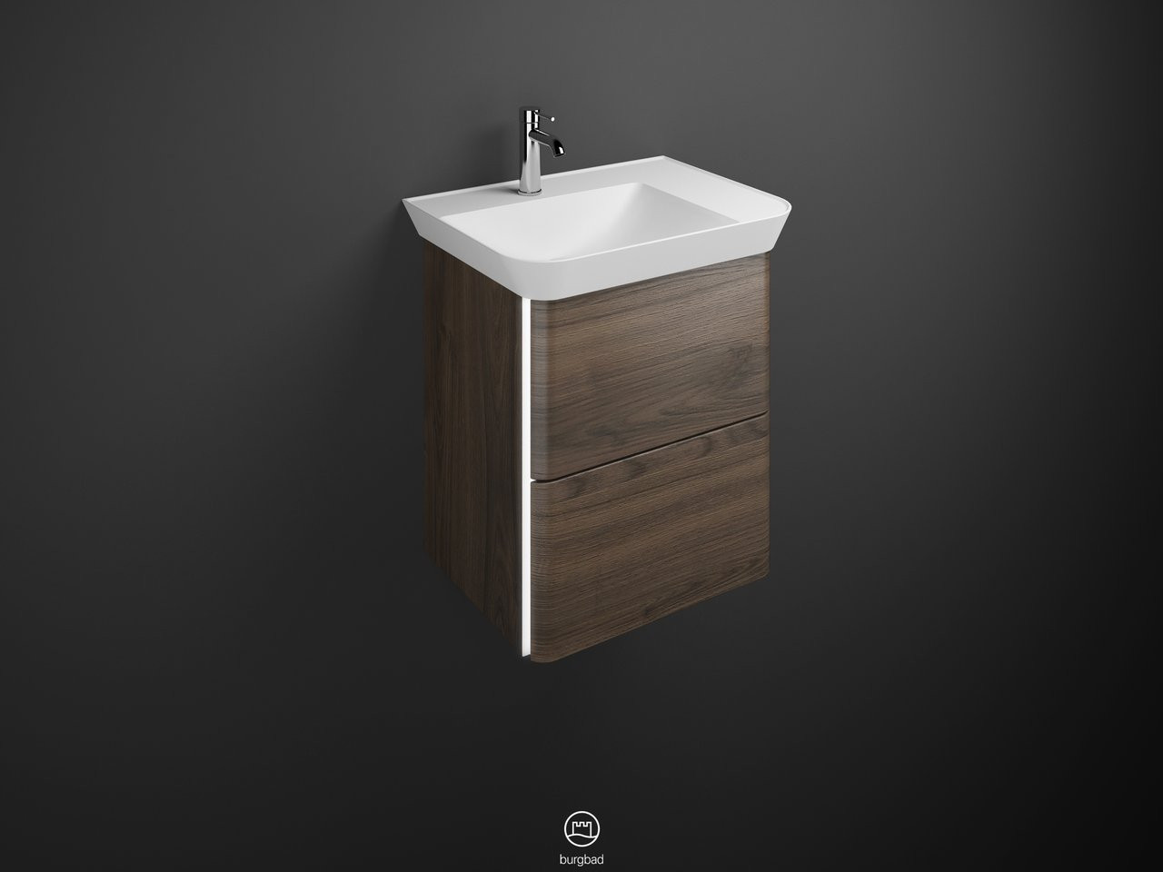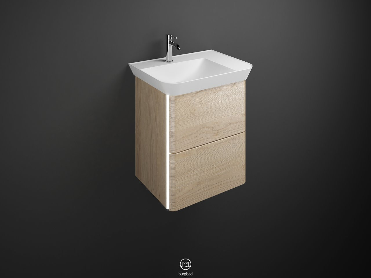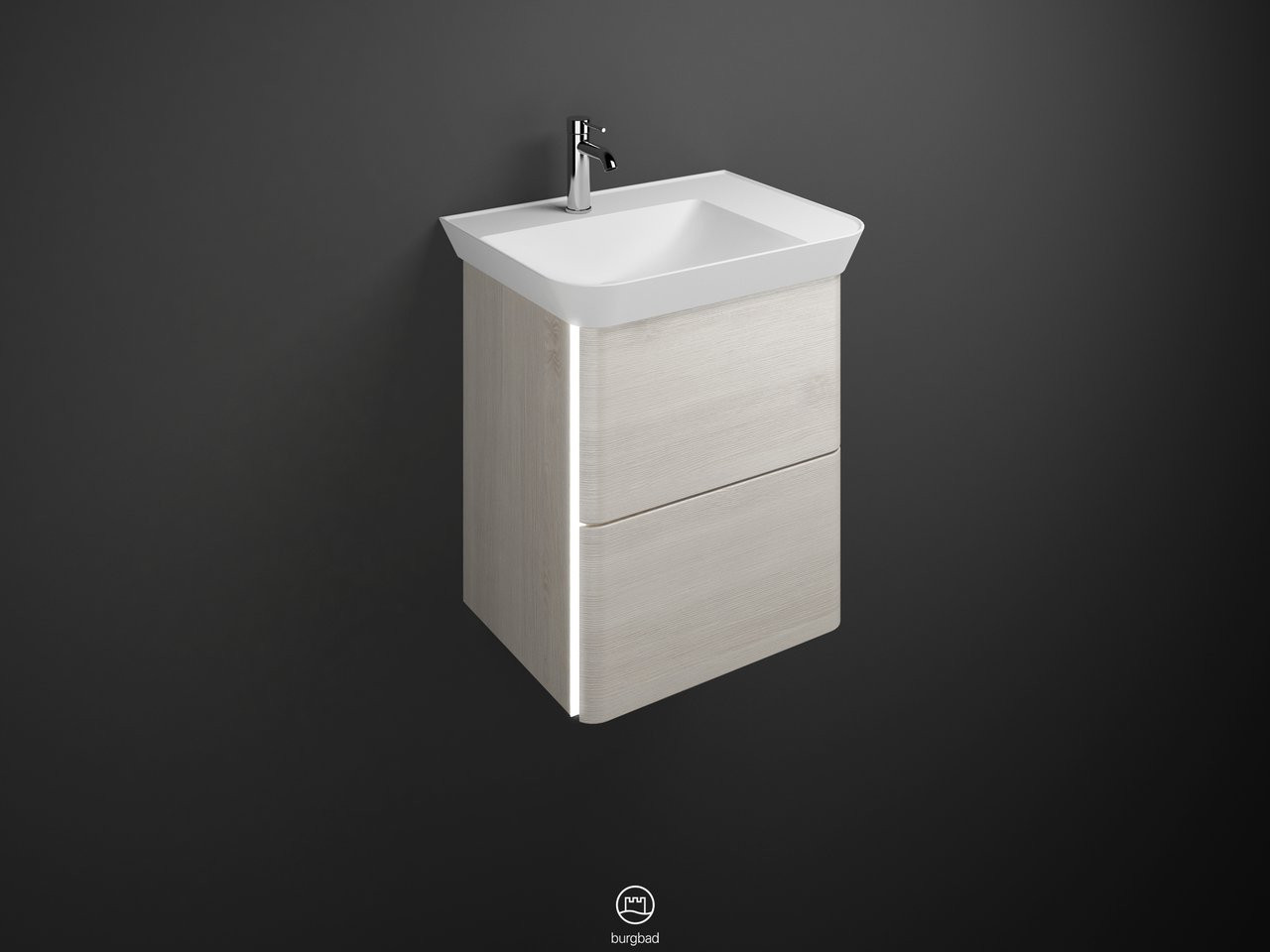 Burgbad LED Mineralguss-Waschtisch Unterschrank-Set Iveo 65 x 72,1 x 49,2 cm, Thermo, 2 Auszüge, LED-Griffleistenbeleuchtung
