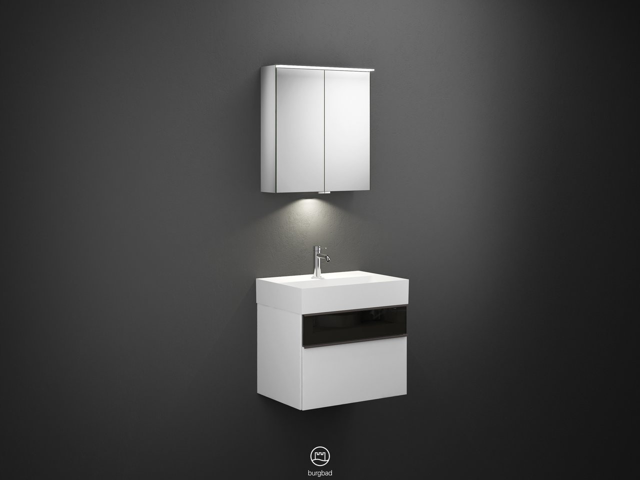 Burgbad LED Waschtisch-Kombination Yumo 66,5x48x47cm, mit Spiegelschrank, LED-Waschtischbeleuchtung, Acryl W507808