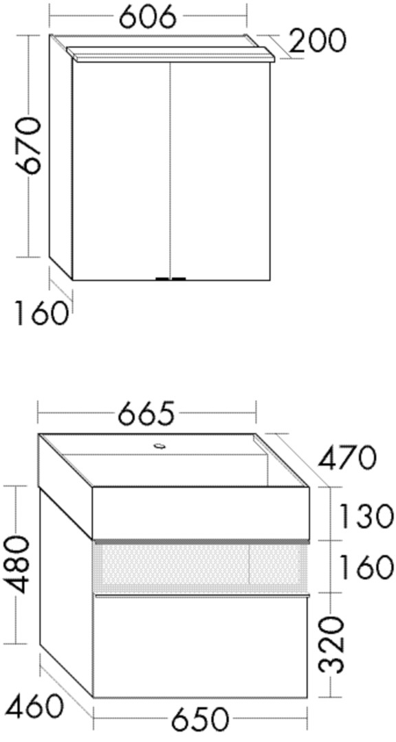 Burgbad LED Waschtisch-Kombination Yumo 66,5x48x47cm, mit Spiegelschrank, LED-Waschtischbeleuchtung, Melamin W507809