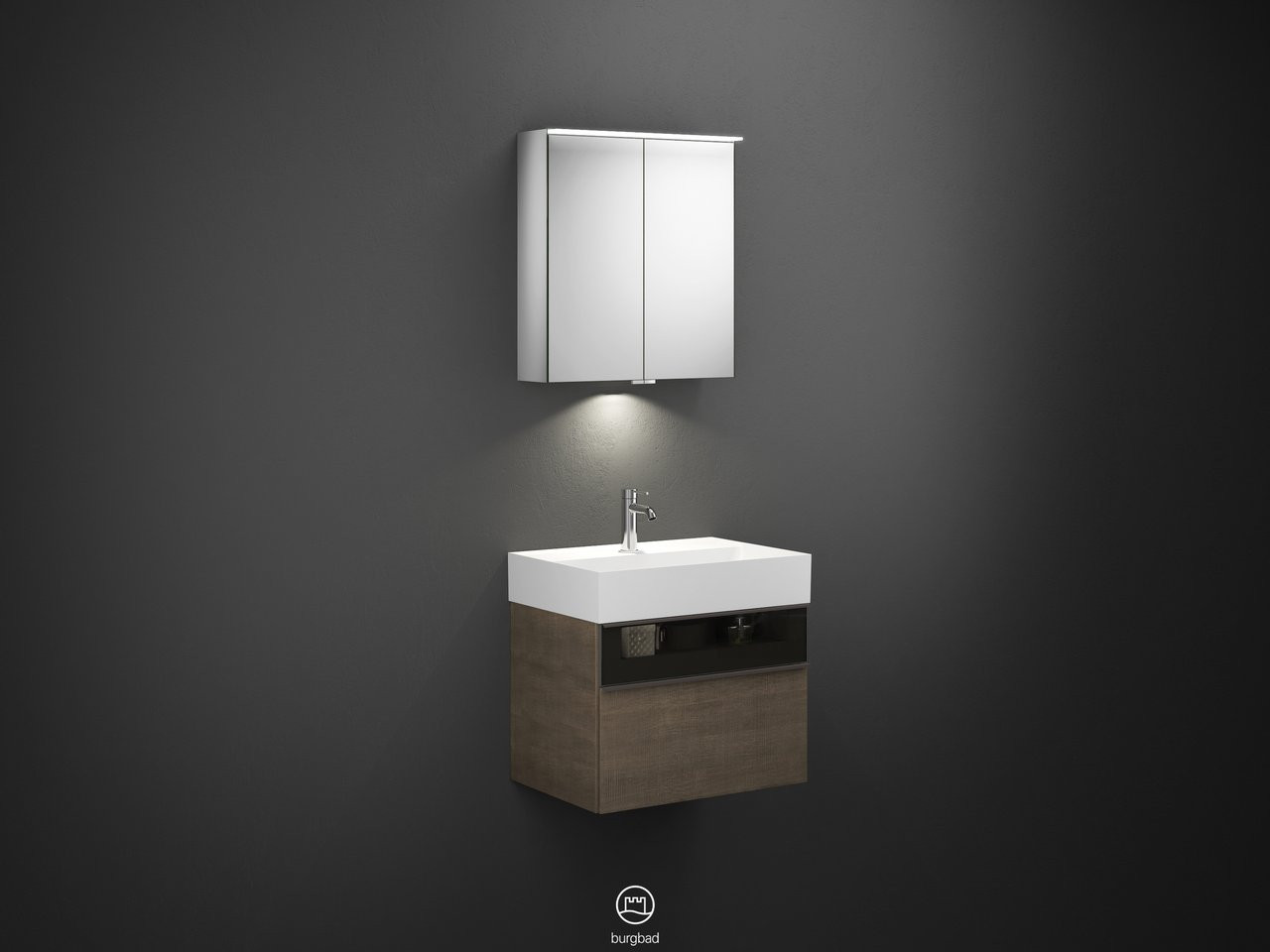 Burgbad LED Waschtisch-Kombination Yumo 66,5x48x47cm, mit Spiegelschrank, LED-Waschtischbeleuchtung, Acryl