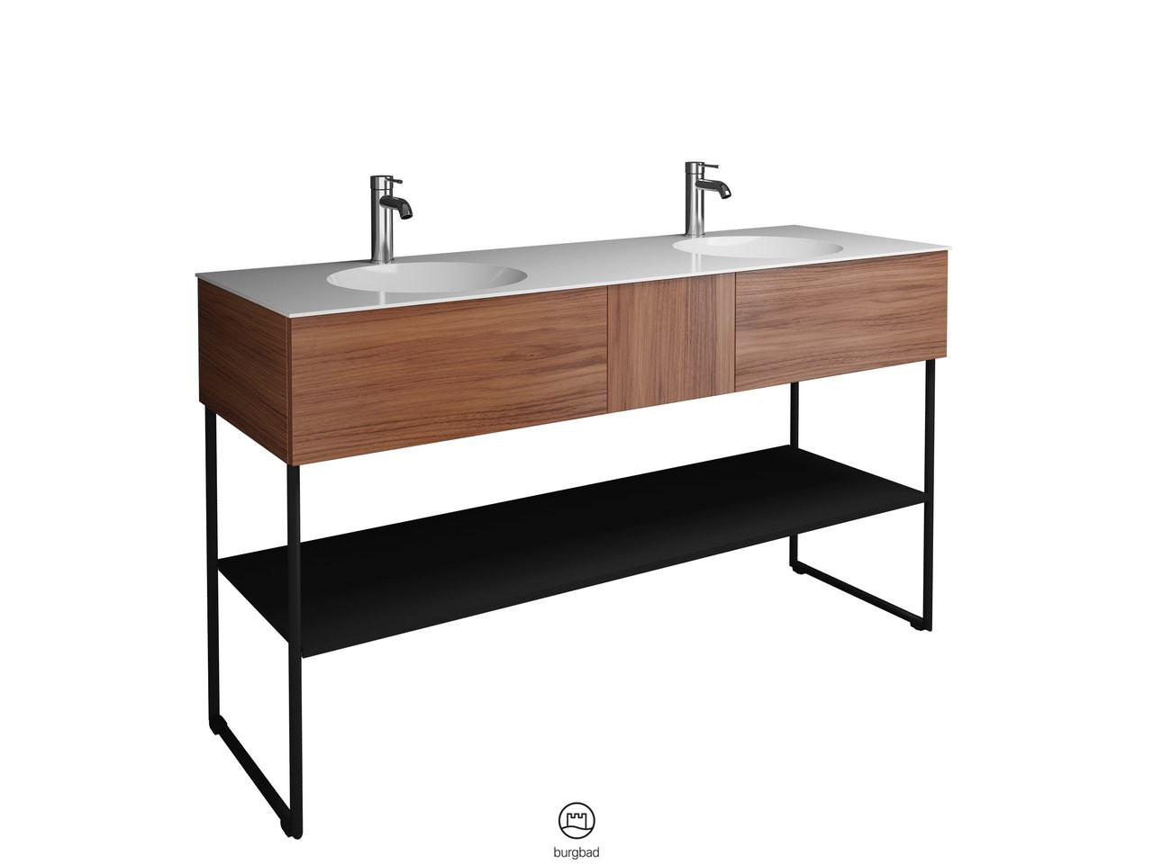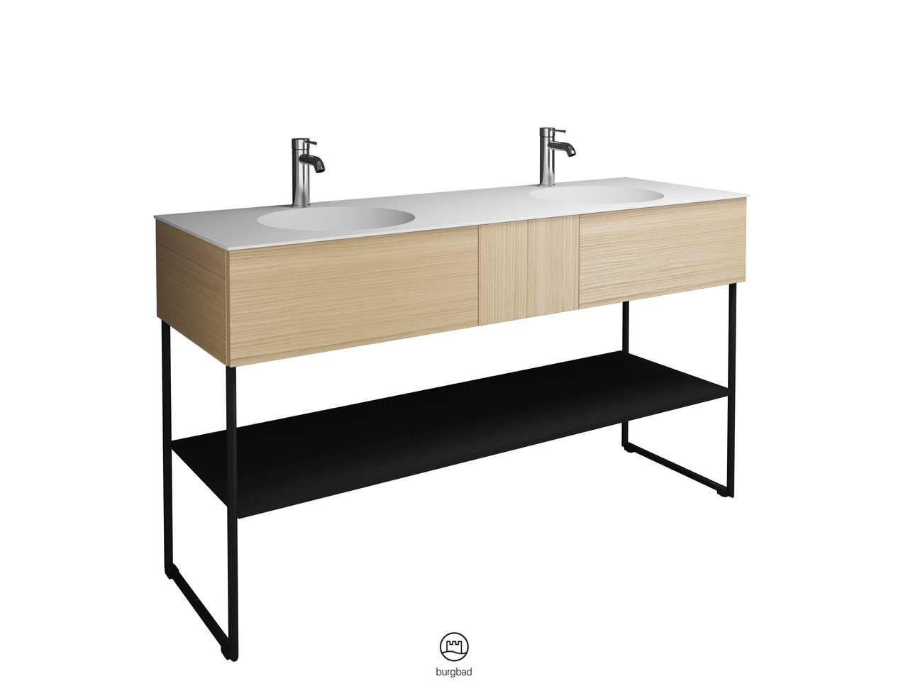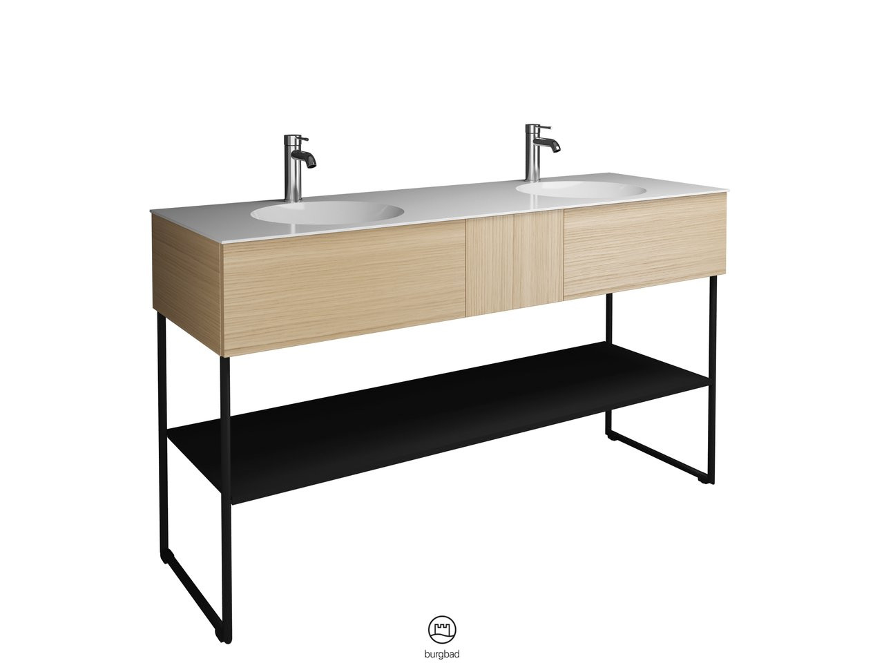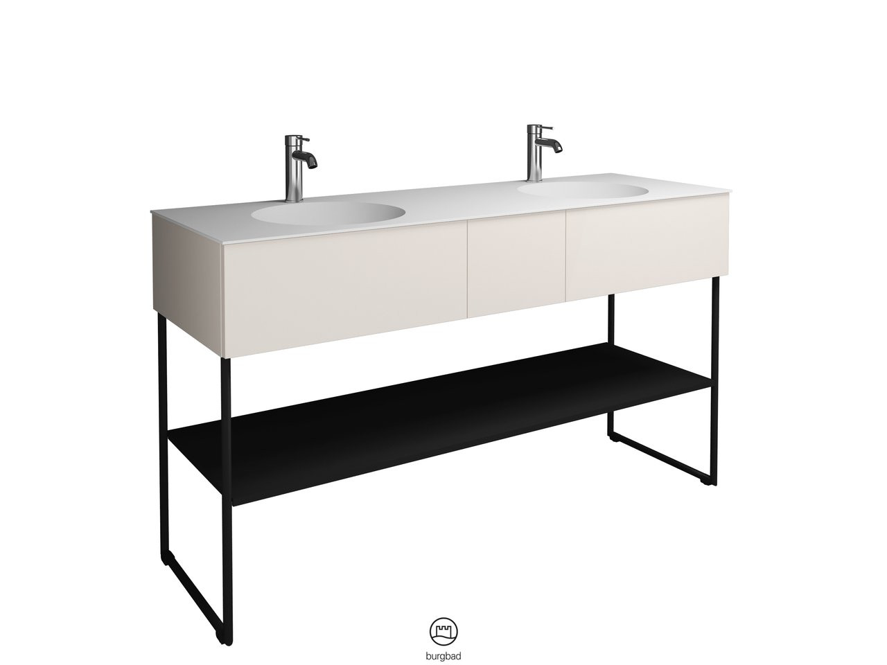 Burgbad Mineralguss Doppelwaschtisch-Unterschrank-Set Coco 150,6x87x50,5cm, 2 Auszüge, 1 Fachboden, Melamin W510497