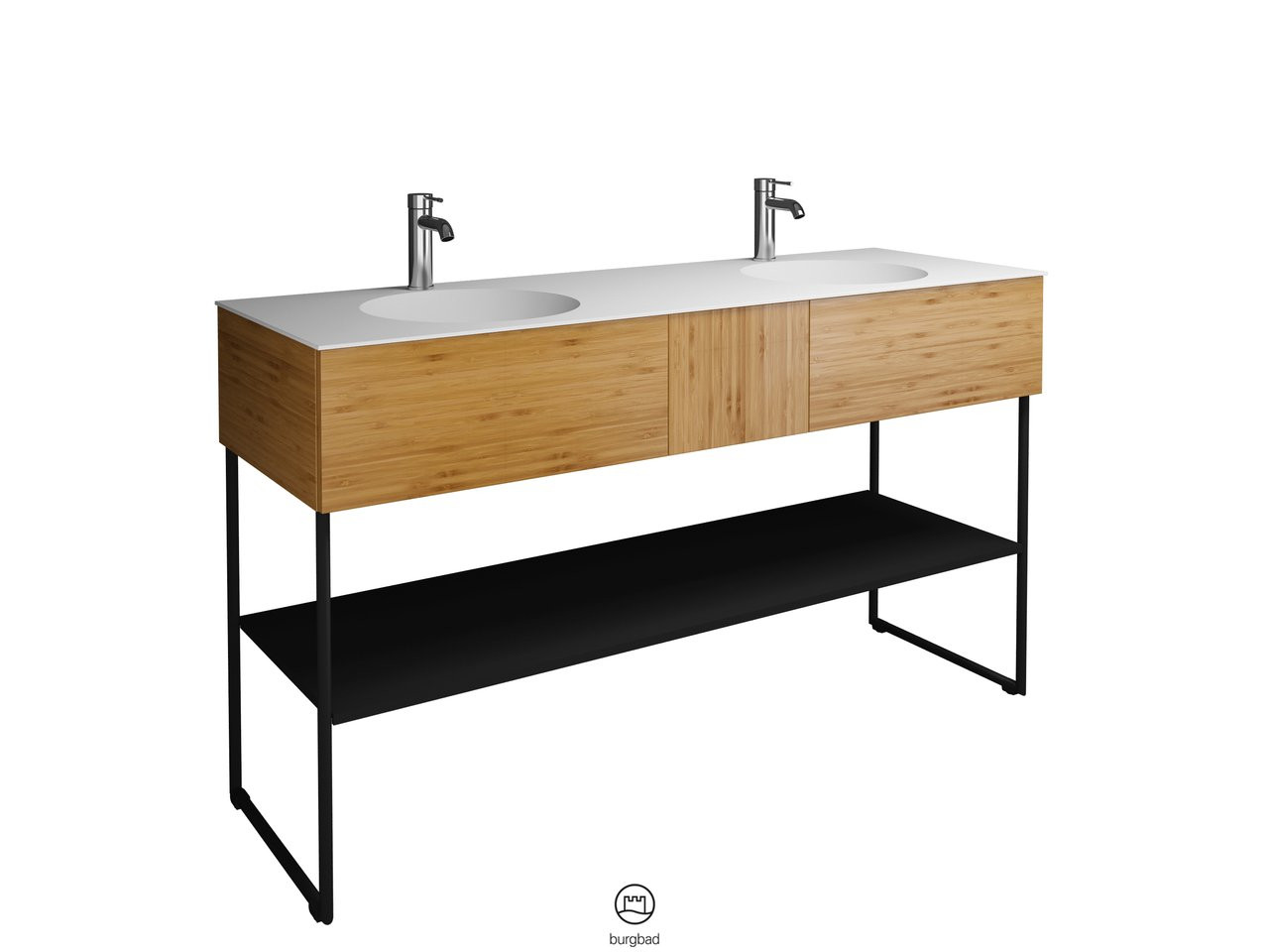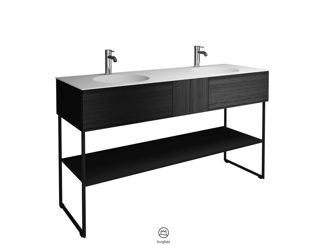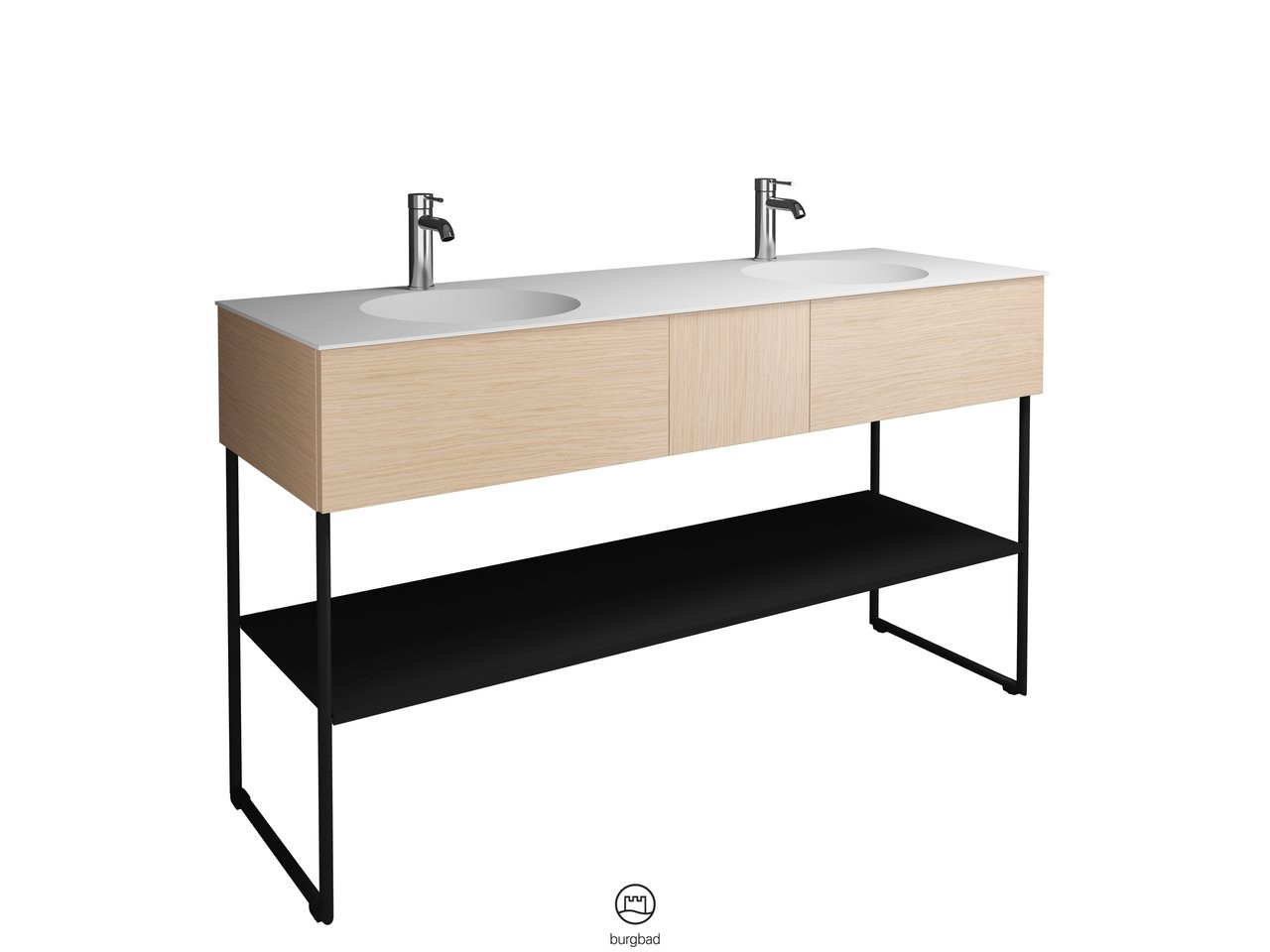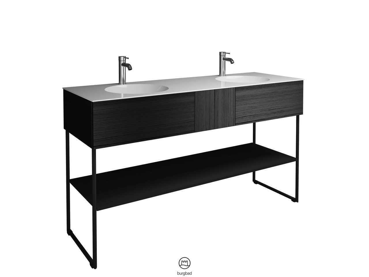 Burgbad Mineralguss Doppelwaschtisch-Unterschrank-Set Coco 150,6x87x50,5cm, 2 Auszüge, 1 Fachboden, Melamin W510497
