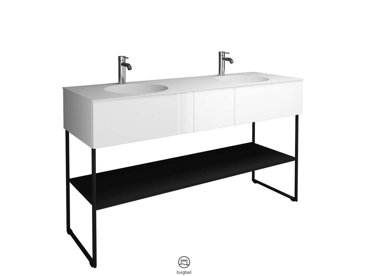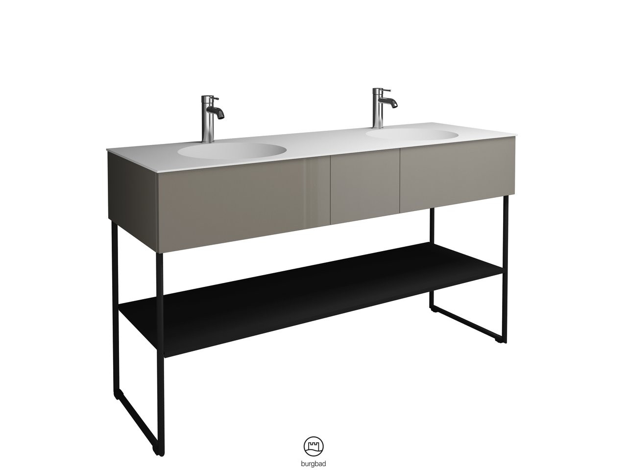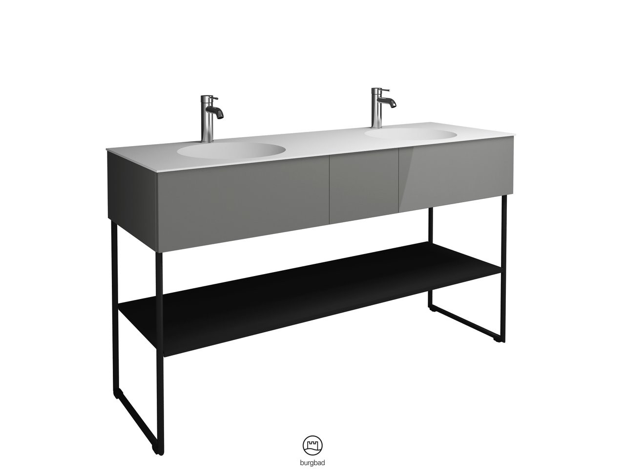 Burgbad Mineralguss Doppelwaschtisch-Unterschrank-Set Coco 150,6x87x50,5cm, 2 Auszüge, 1 Fachboden, Lackiert Hochglanz
