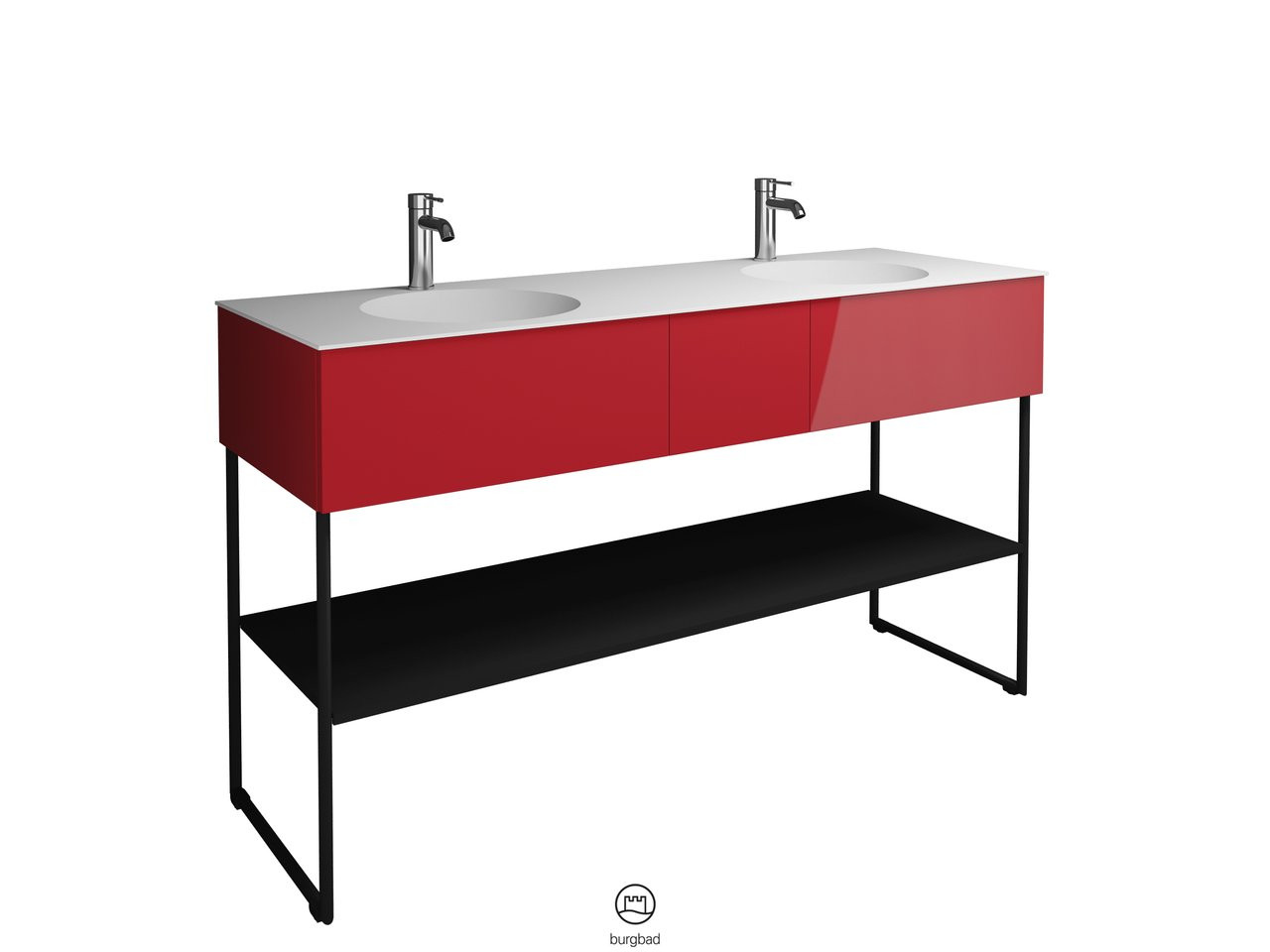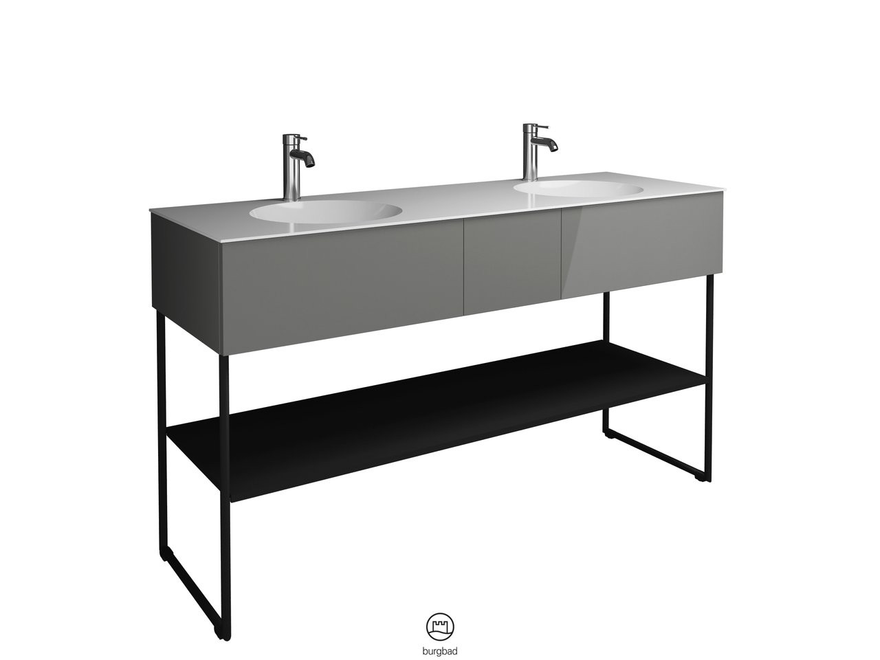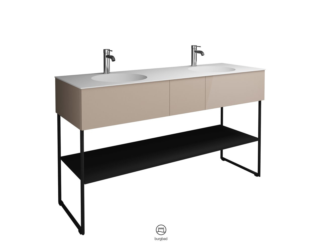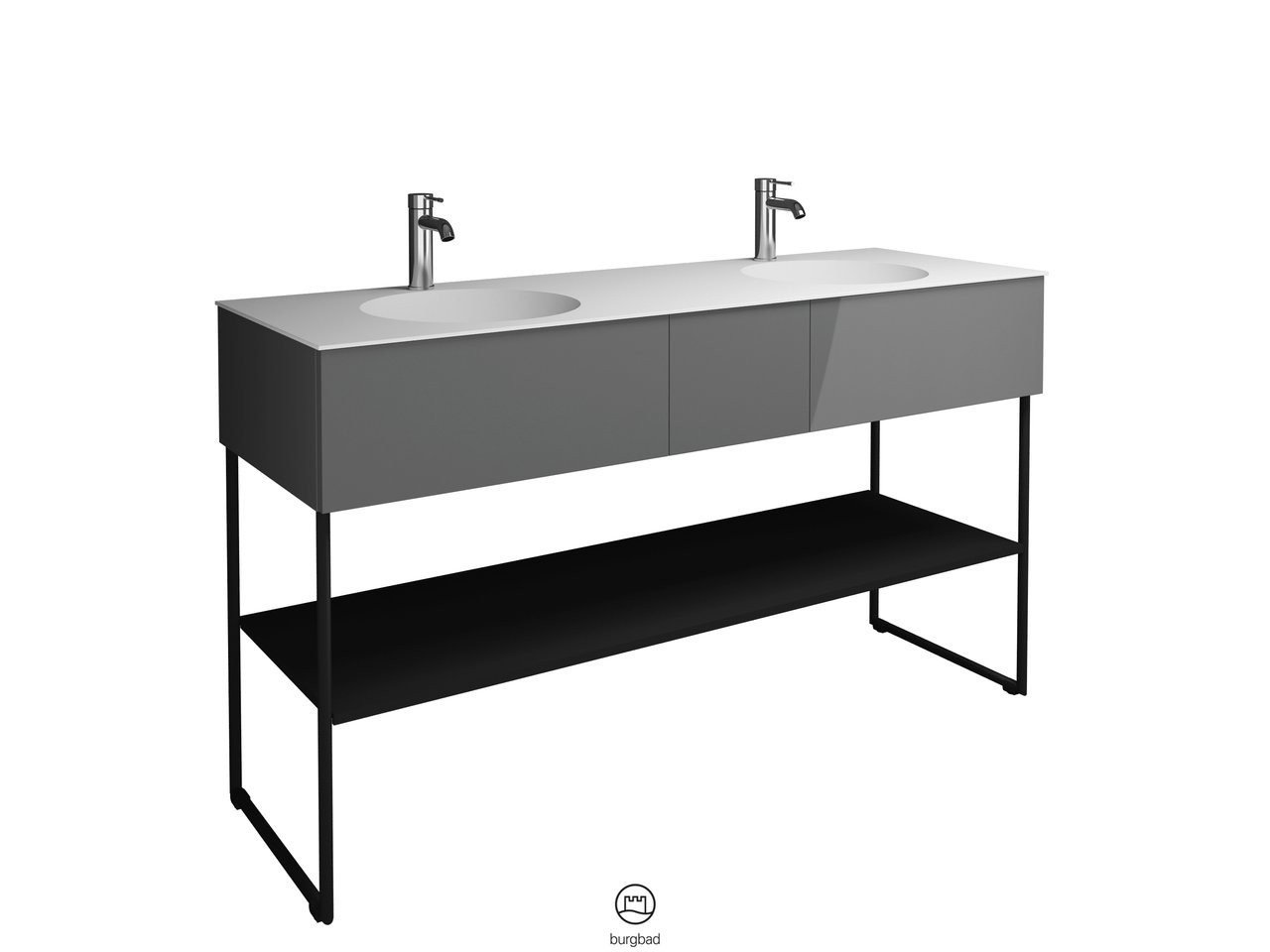 Burgbad Mineralguss Doppelwaschtisch-Unterschrank-Set Coco 150,6x87x50,5cm, 2 Auszüge, 1 Fachboden, Lackiert Hochglanz