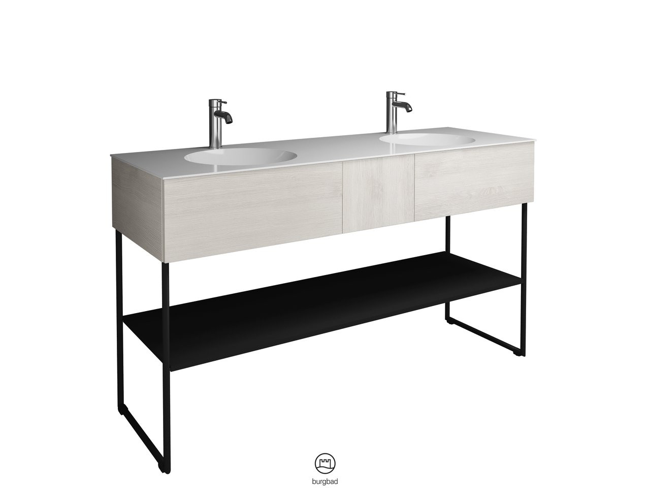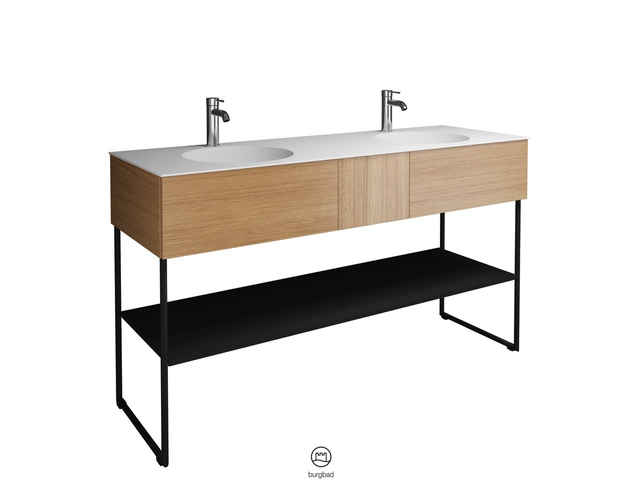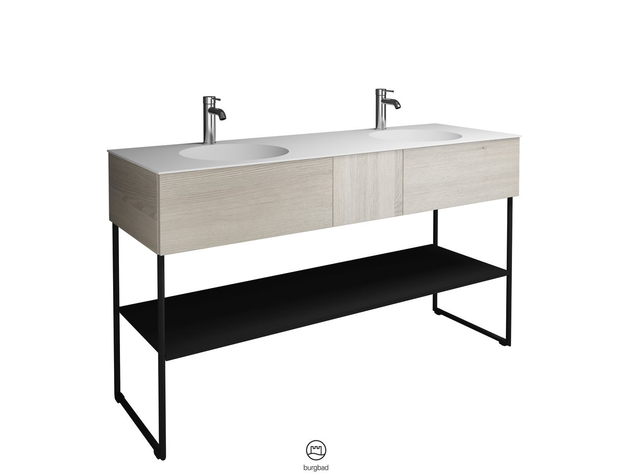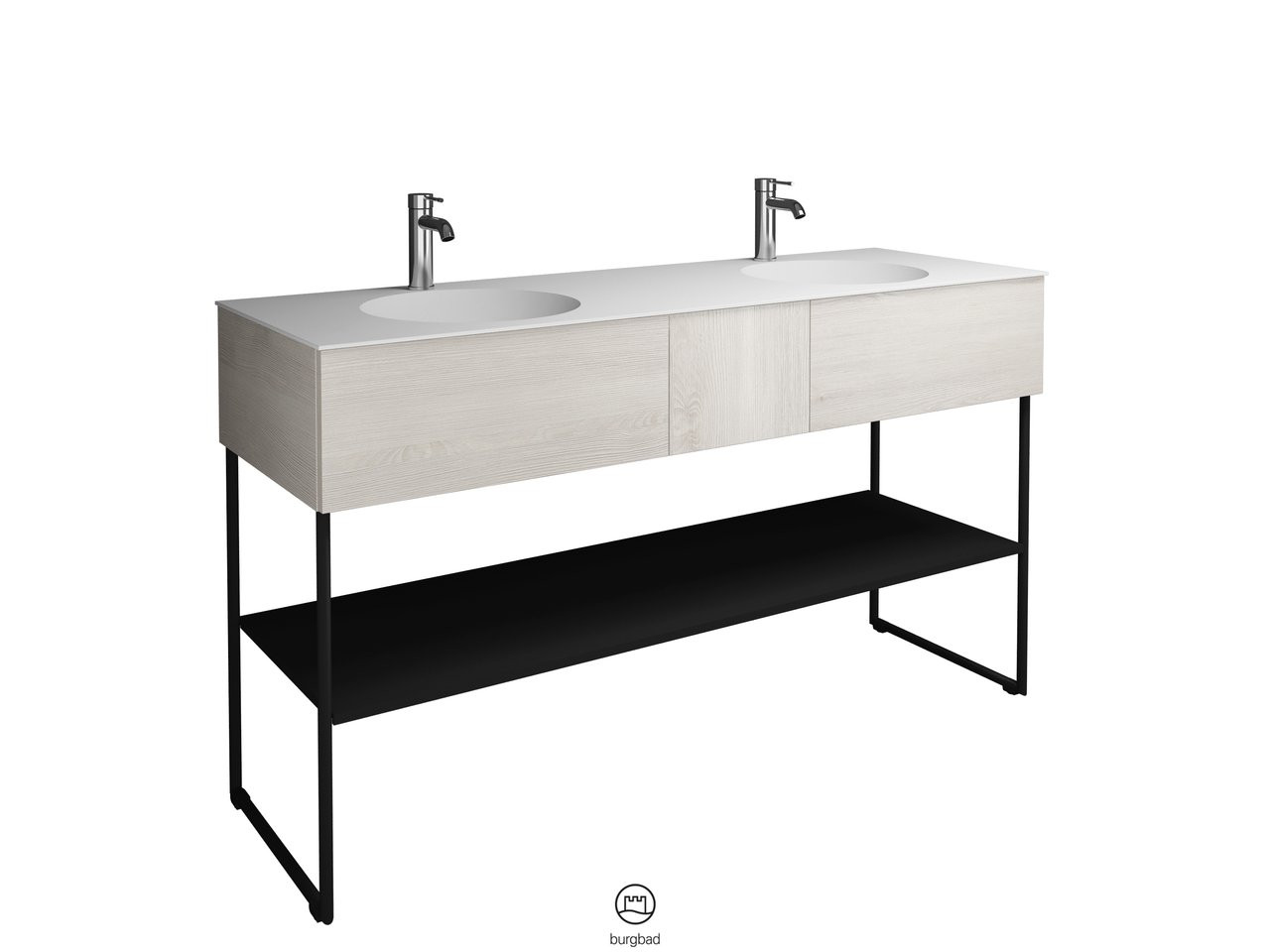 Burgbad Mineralguss Doppelwaschtisch-Unterschrank-Set Coco 150,6x87x50,5cm, 2 Auszüge, 1 Fachboden, Melamin