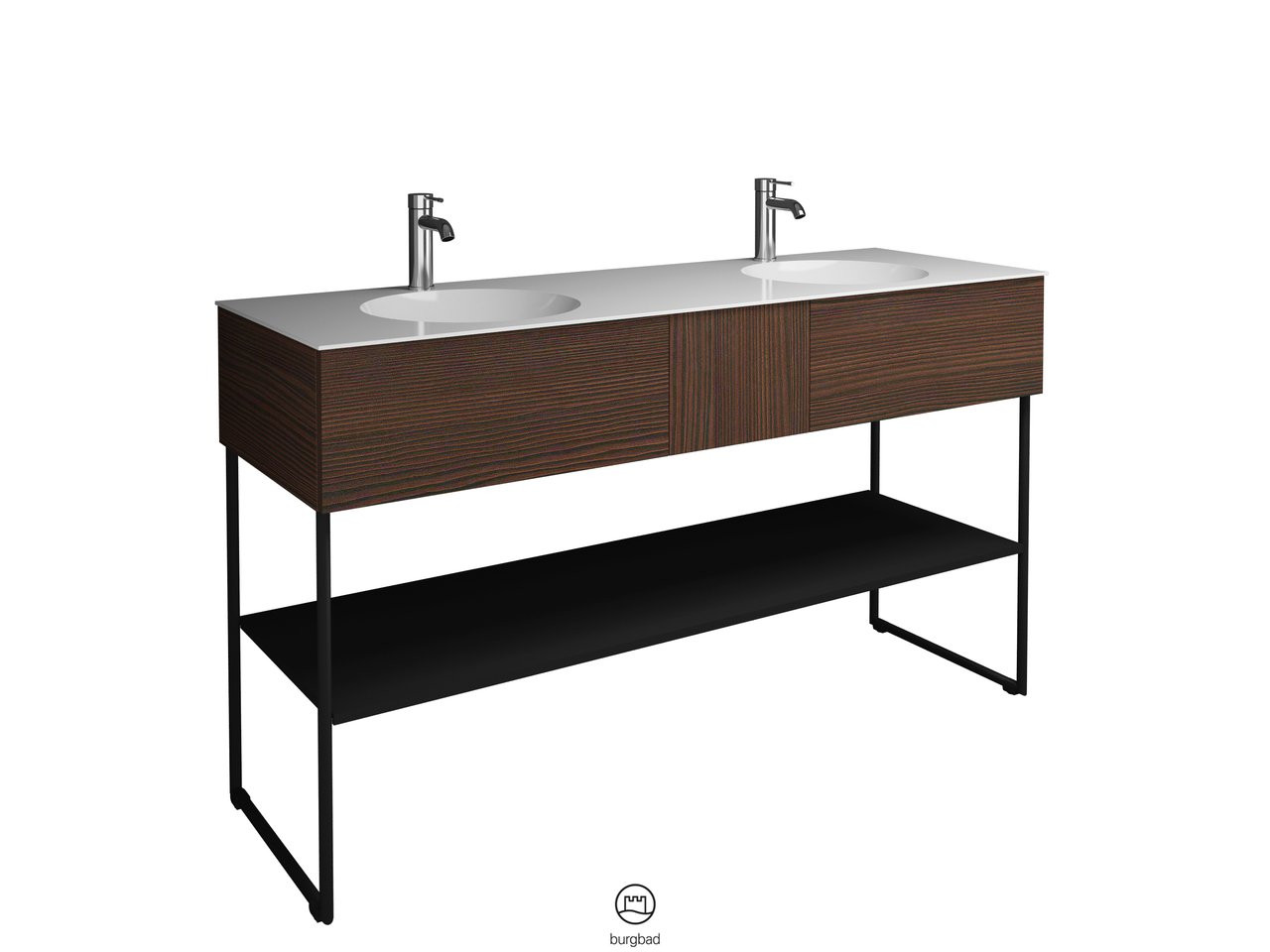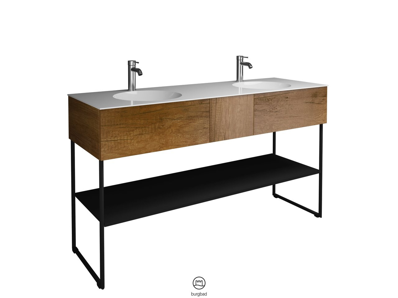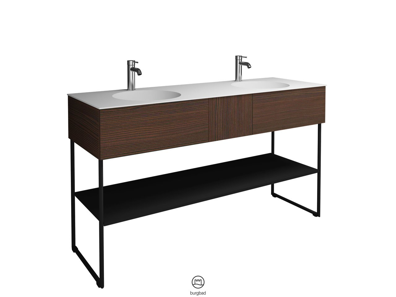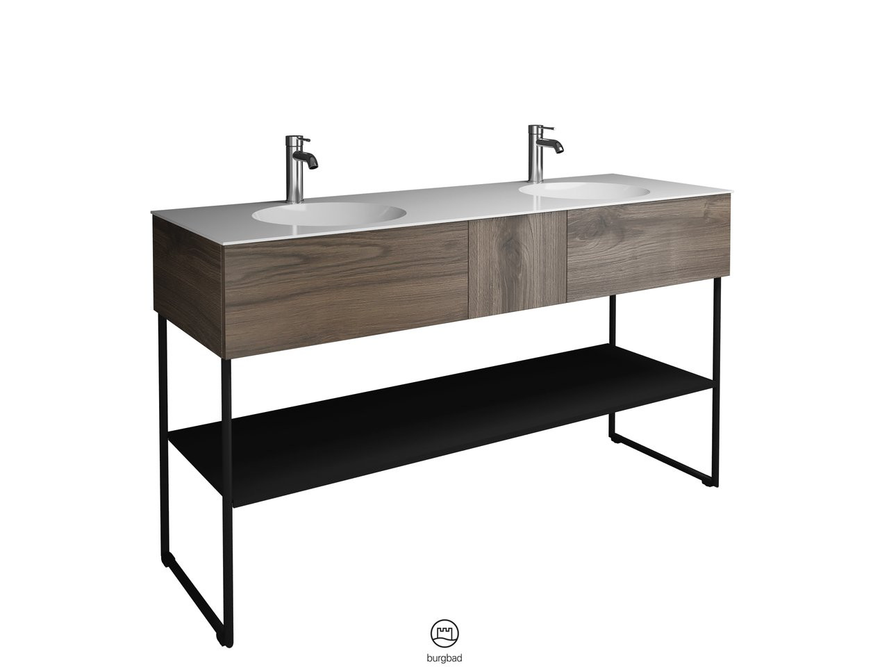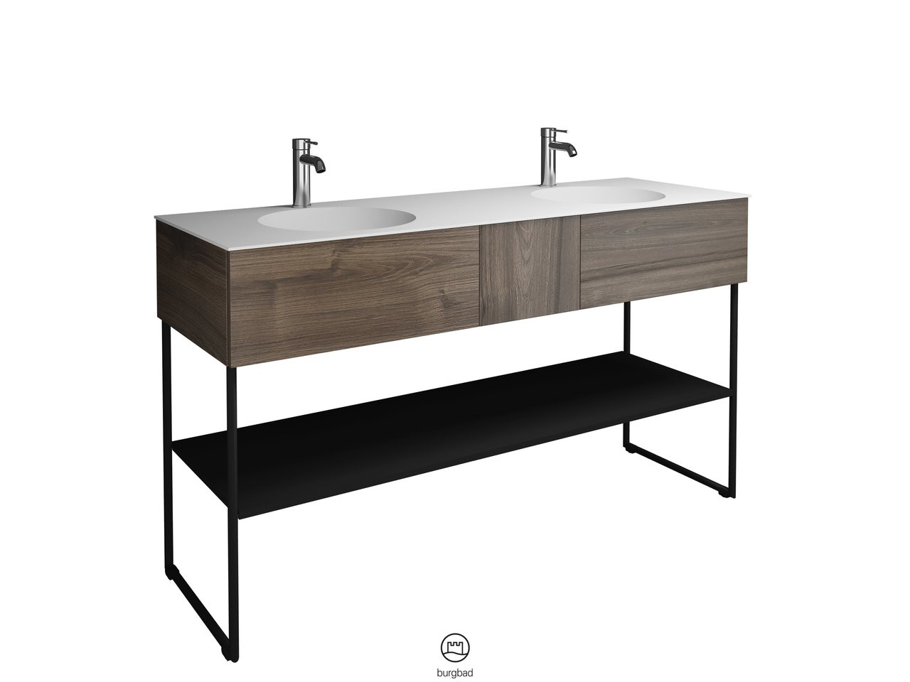 Burgbad Mineralguss Doppelwaschtisch-Unterschrank-Set Coco 150,6x87x50,5cm, 2 Auszüge, 1 Fachboden, Melamin