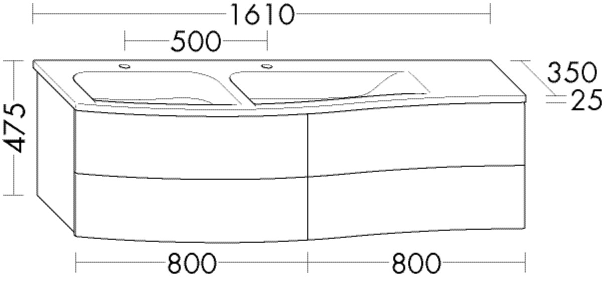 Waschtisch: Muldentiefe 105 mm, Unterschrank: 4 Schubladen mit Griffmulde, mit cleanFlow