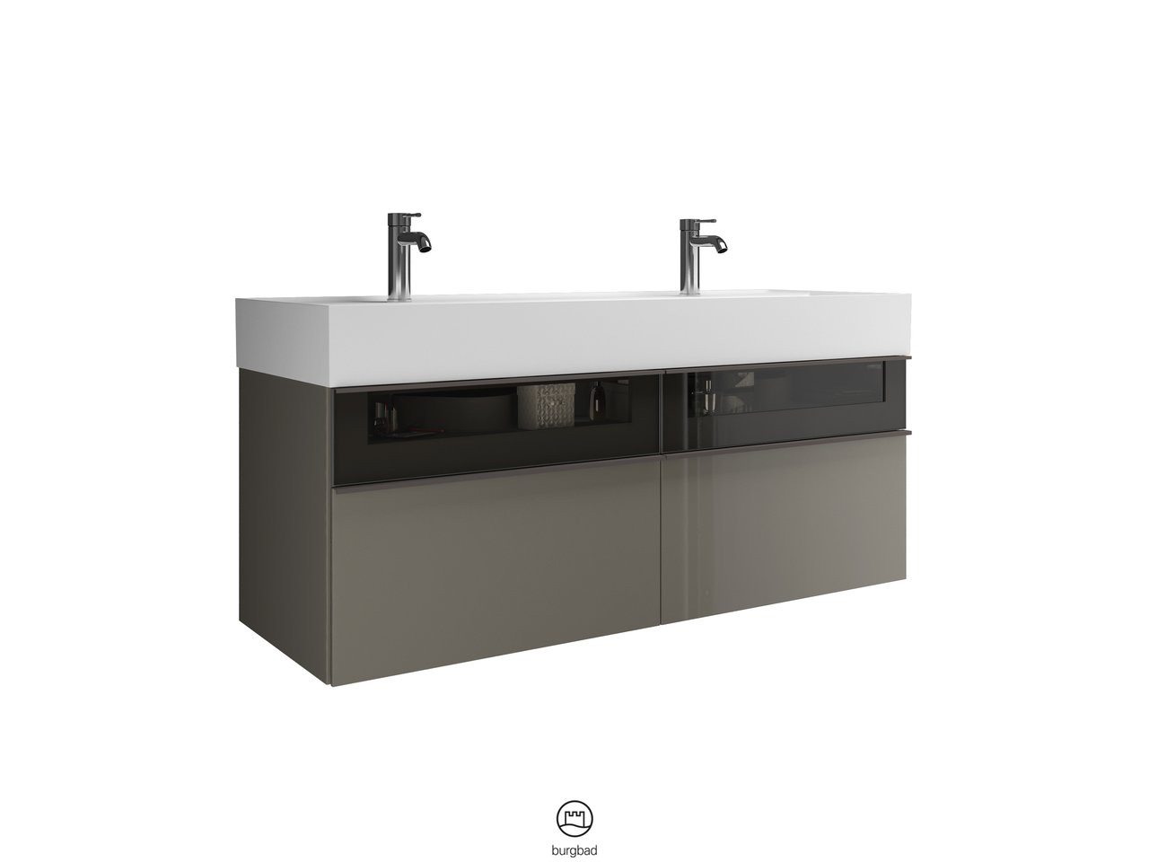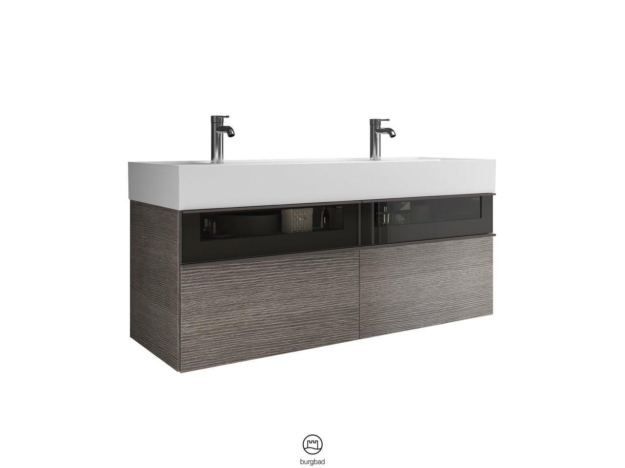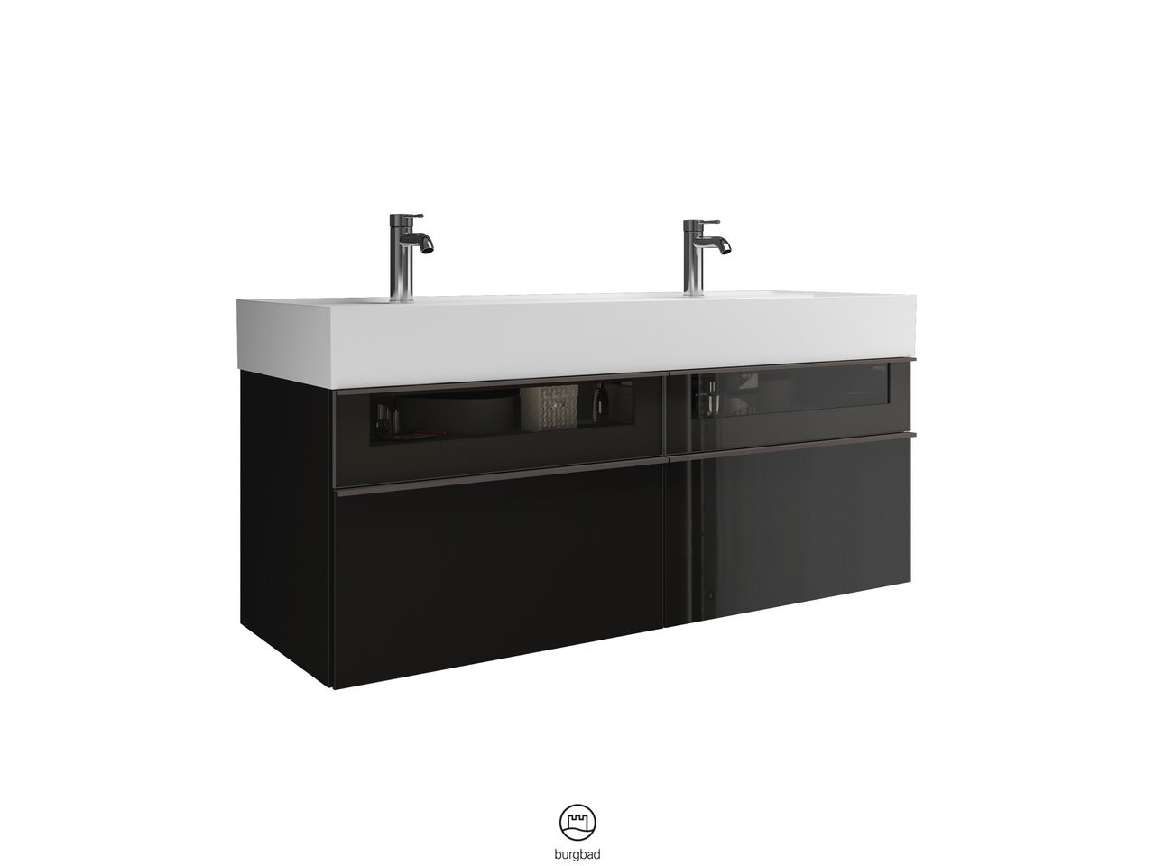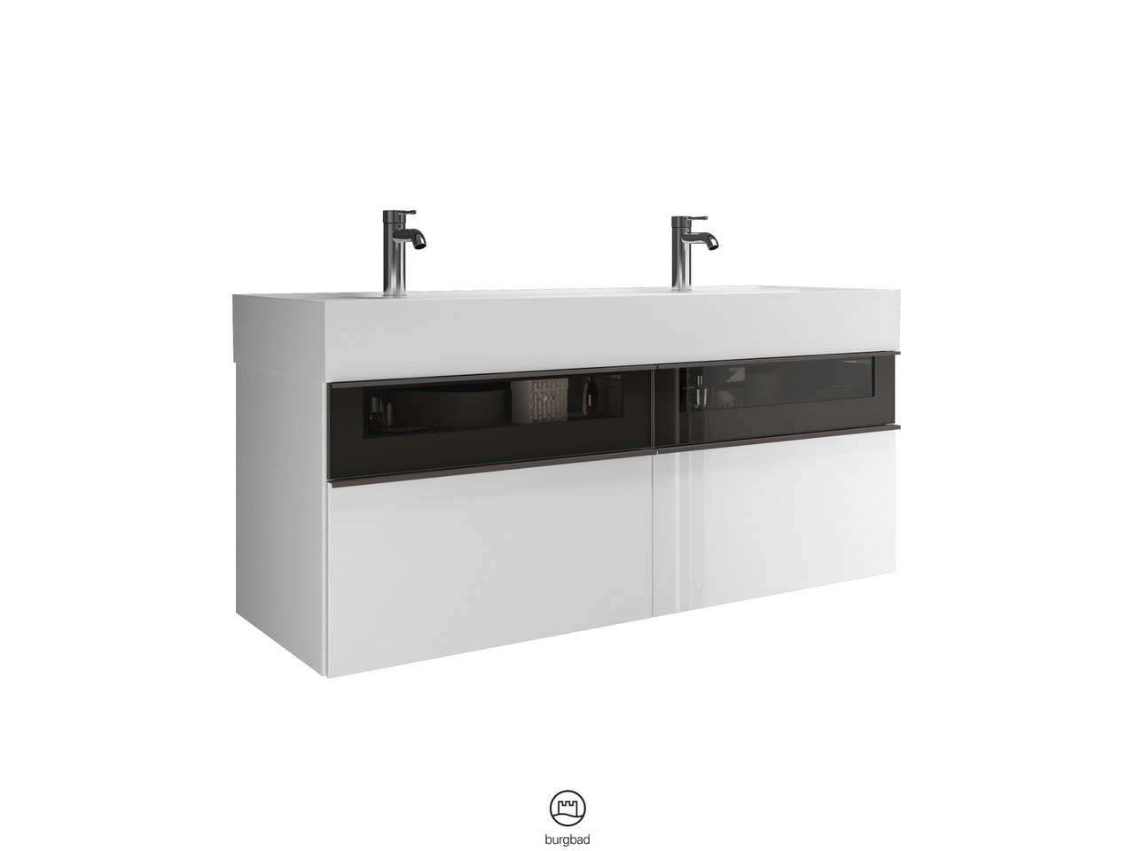 Burgbad Mineralguss Doppelwaschtisch-Unterschrank Set Yumo 131,5x61x47cm, 2 Schubladen/Auszüge, Waschtisch weiß, Acryl