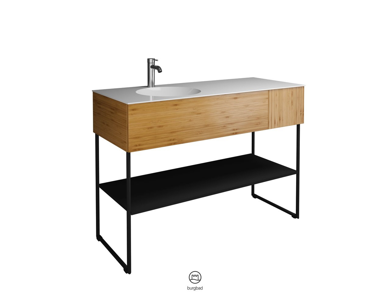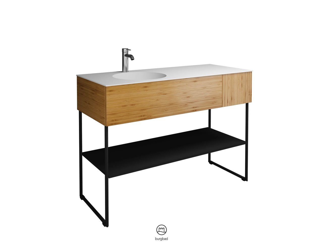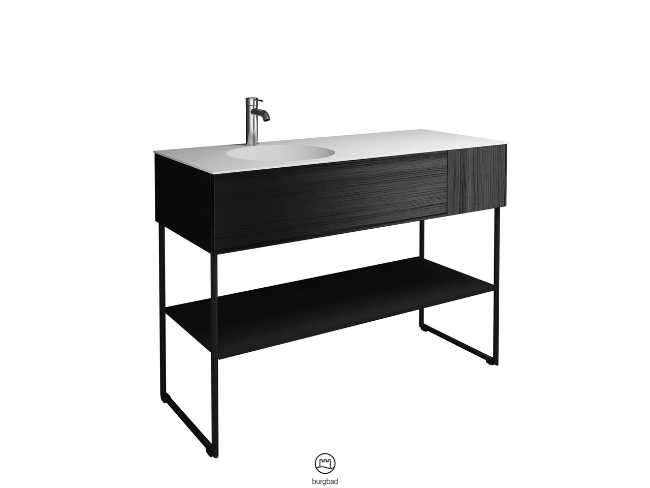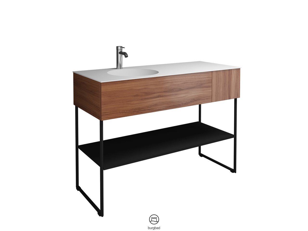 Burgbad Mineralguss Waschtisch-Unterschrank-Set Coco 120,6 x 87 x 50,5 cm, Lackiert Matt, 1 Auszug, 1 Fachboden W510490