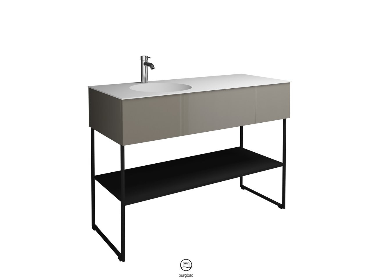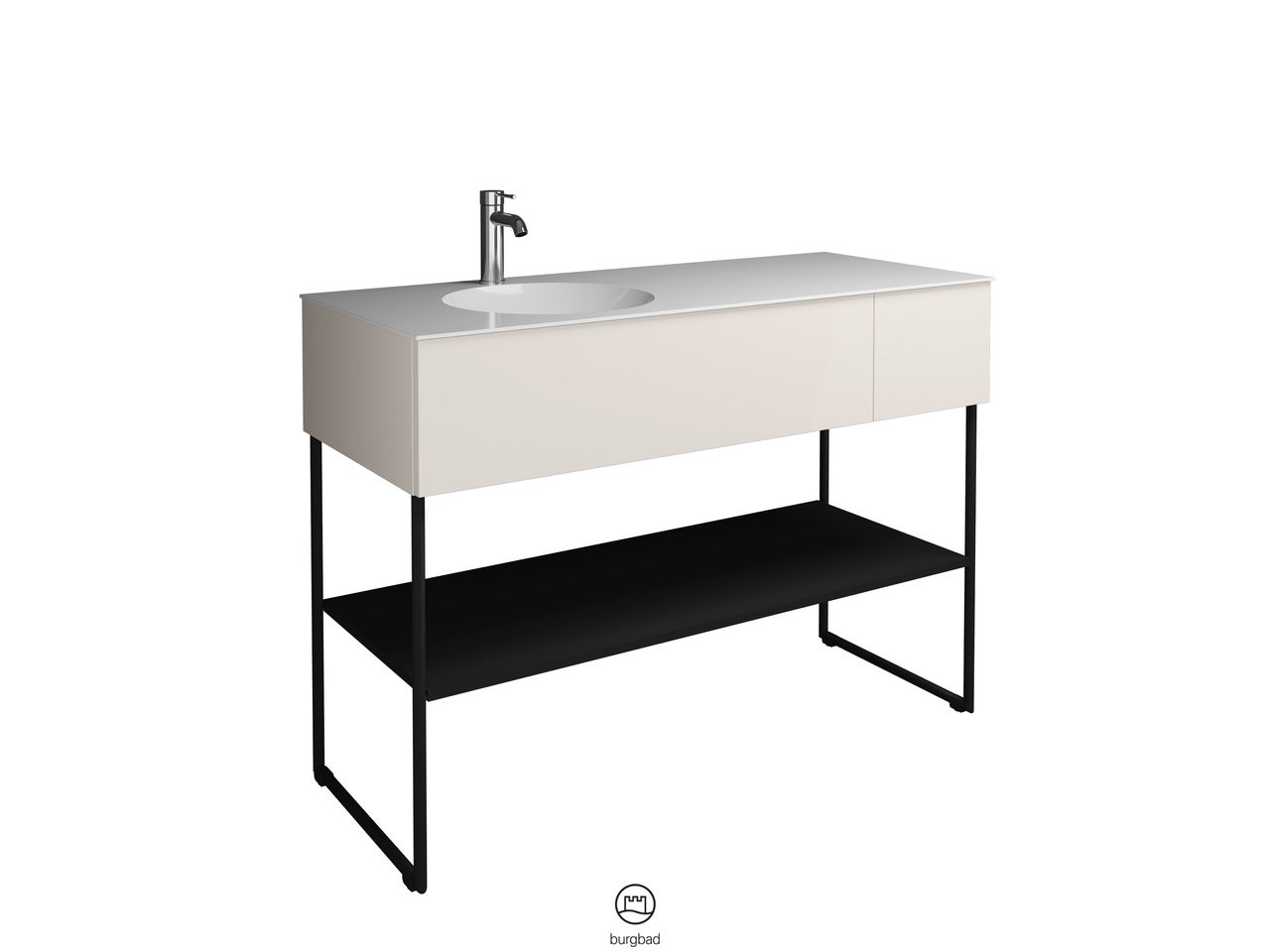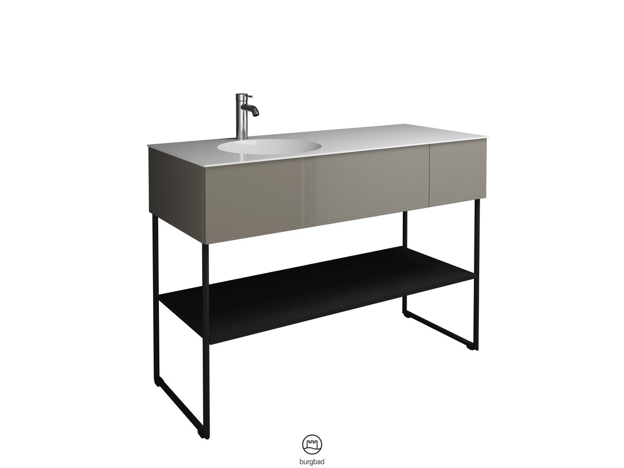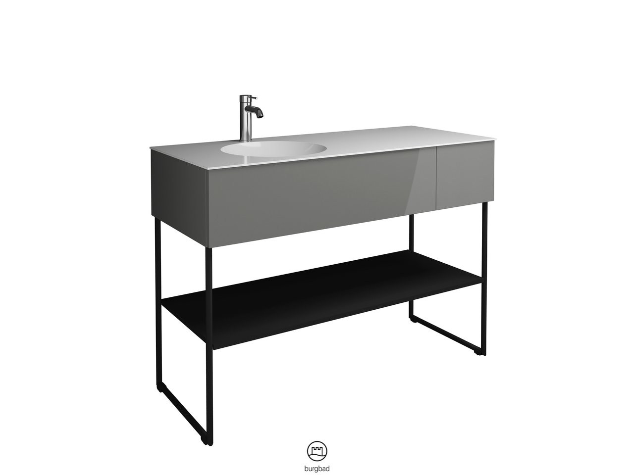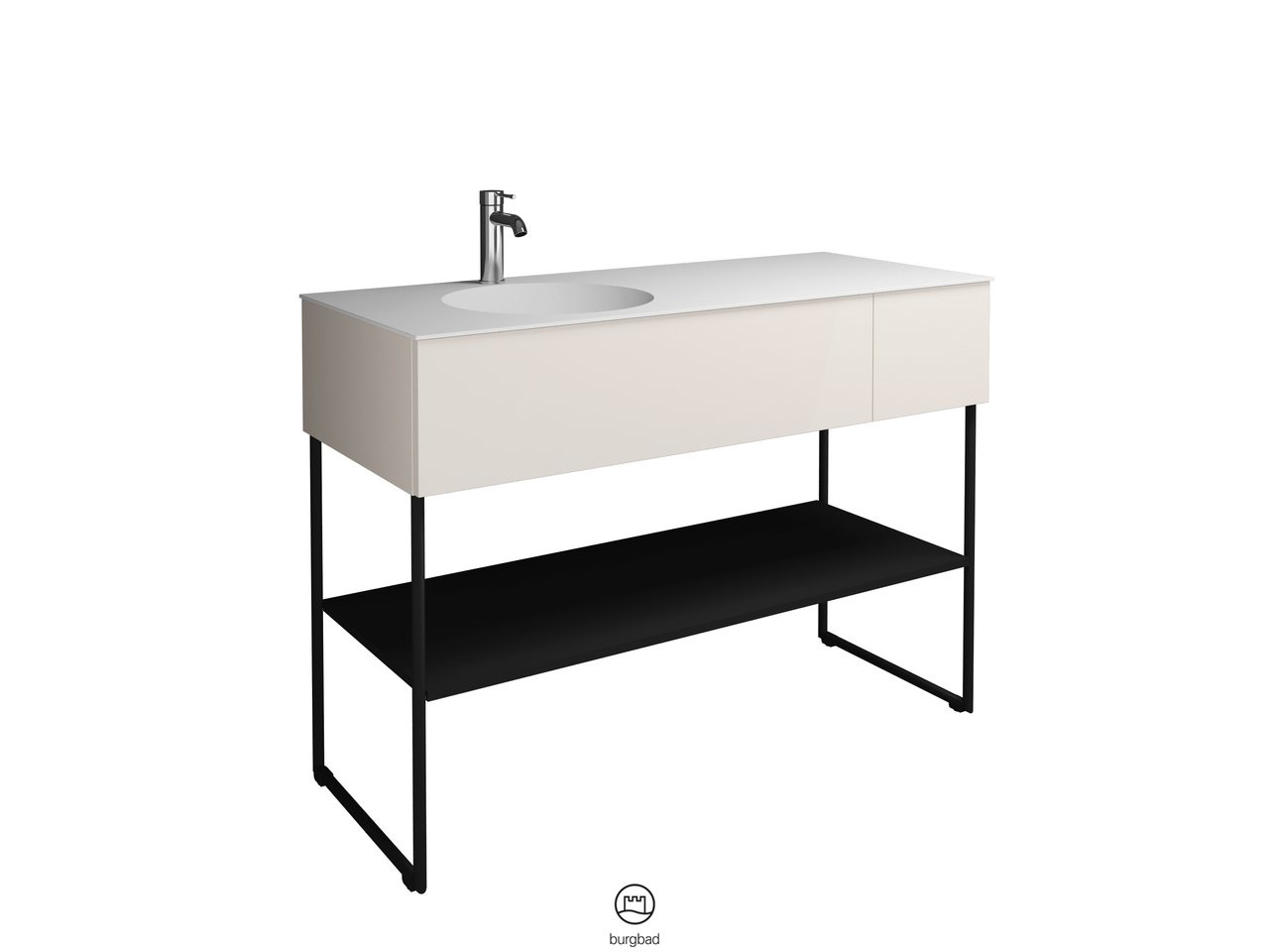 Burgbad Mineralguss Waschtisch-Unterschrank-Set Coco 120,6 x 87 x 50,5 cm, Lackiert Hochglanz, 1 Auszug, 1 Fachboden