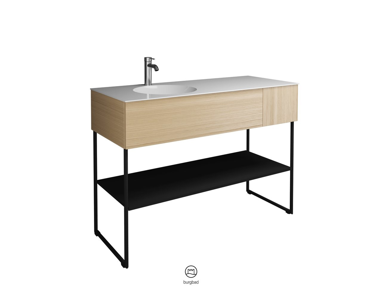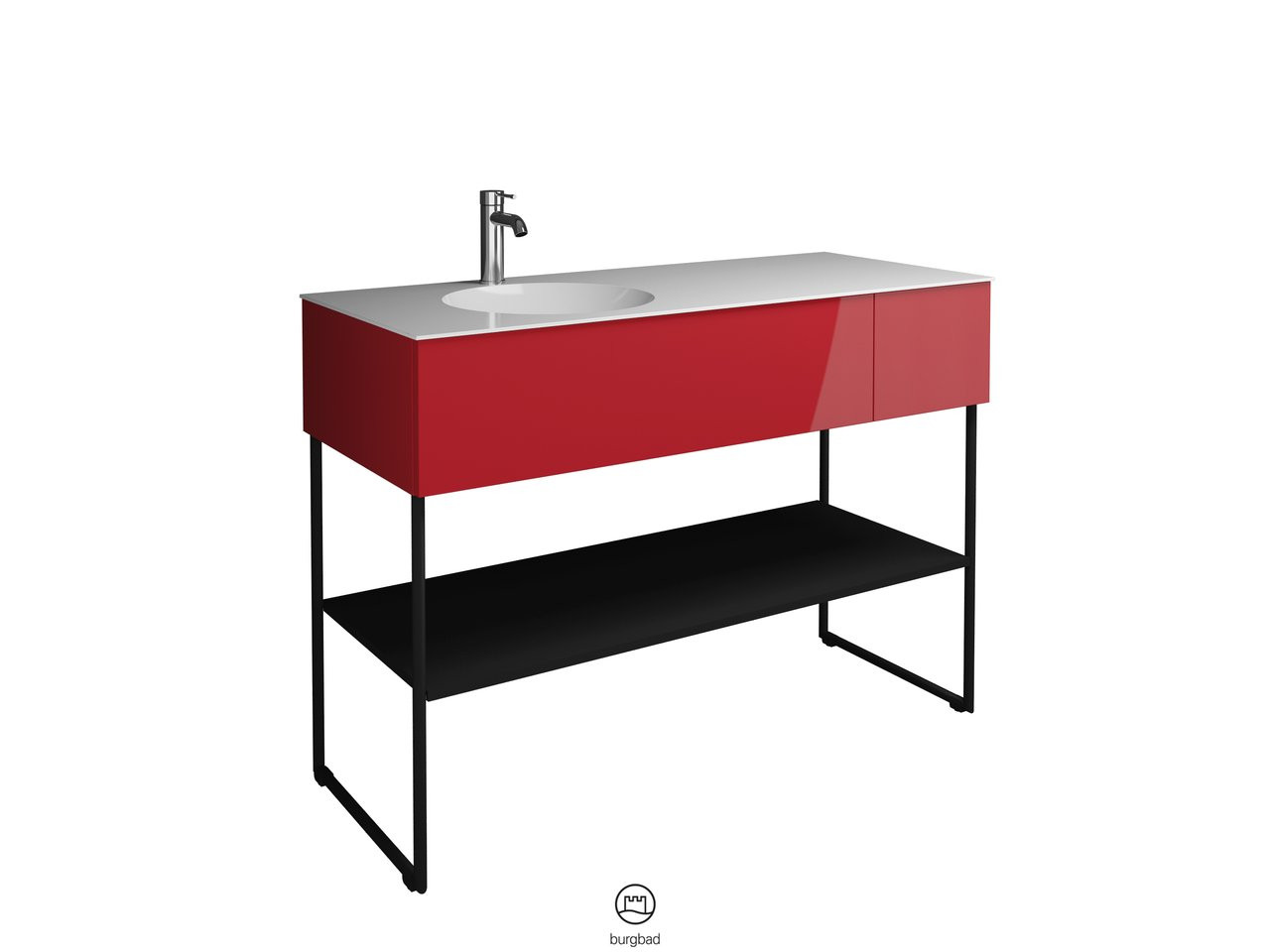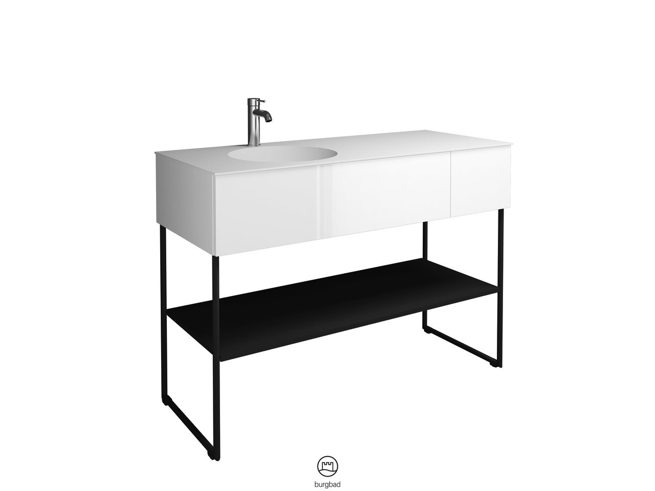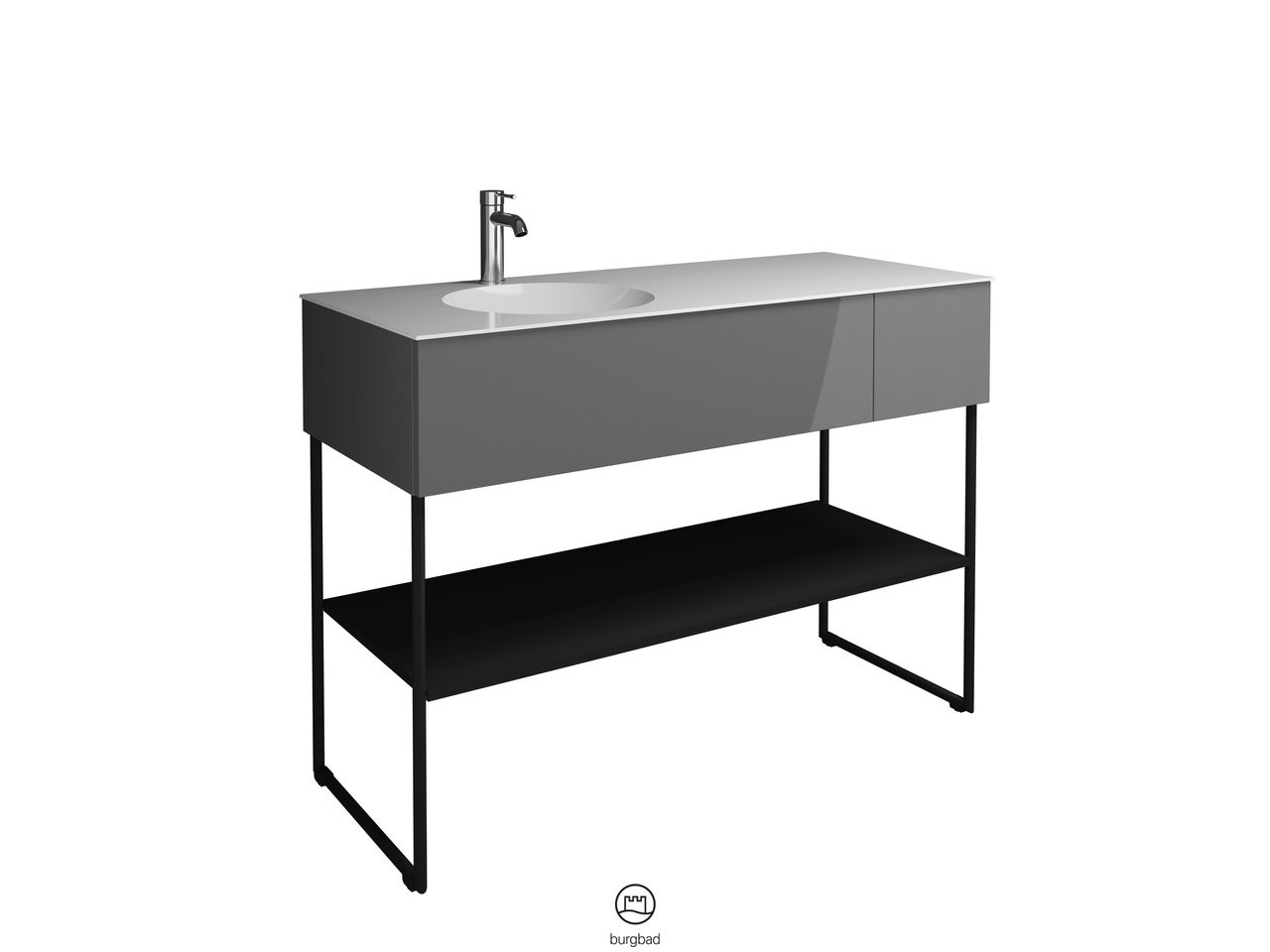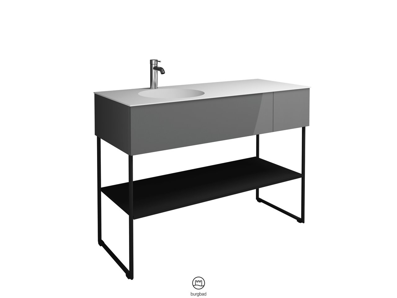 Burgbad Mineralguss Waschtisch-Unterschrank-Set Coco 120,6 x 87 x 50,5 cm, Lackiert Hochglanz, 1 Auszug, 1 Fachboden