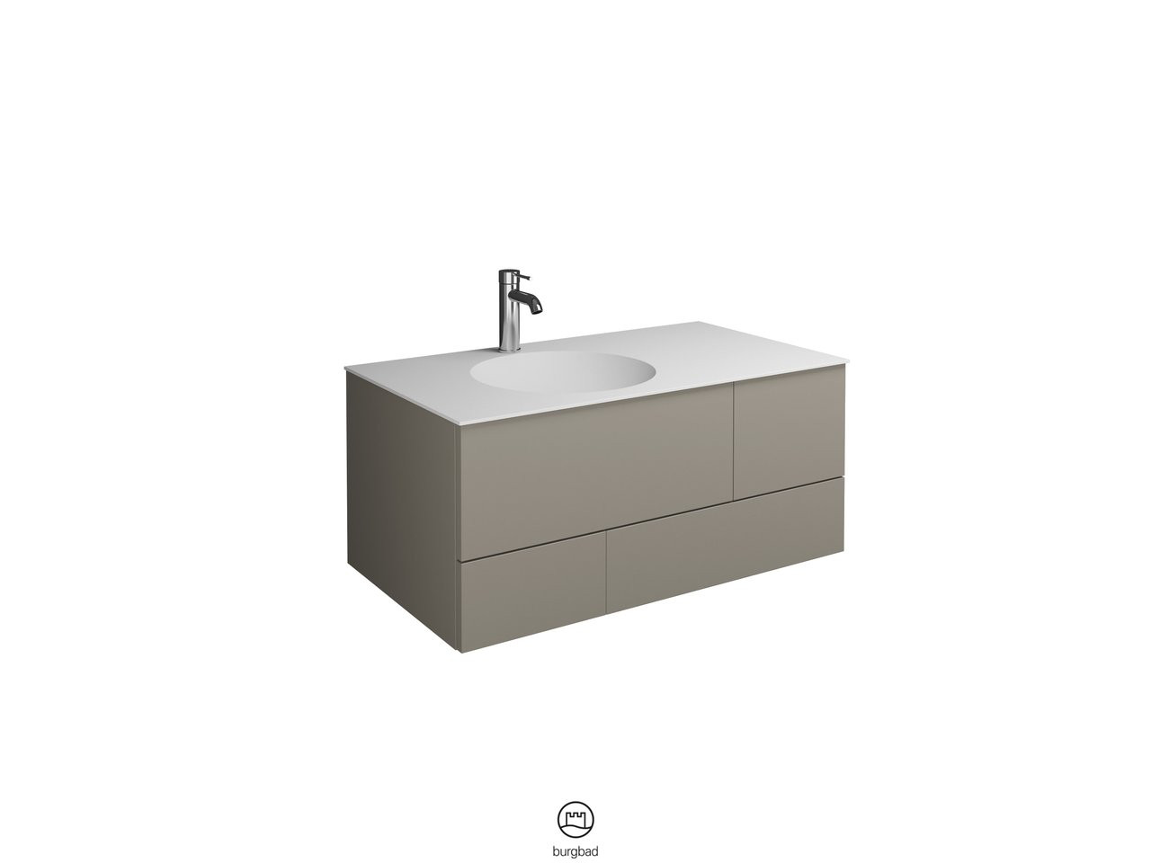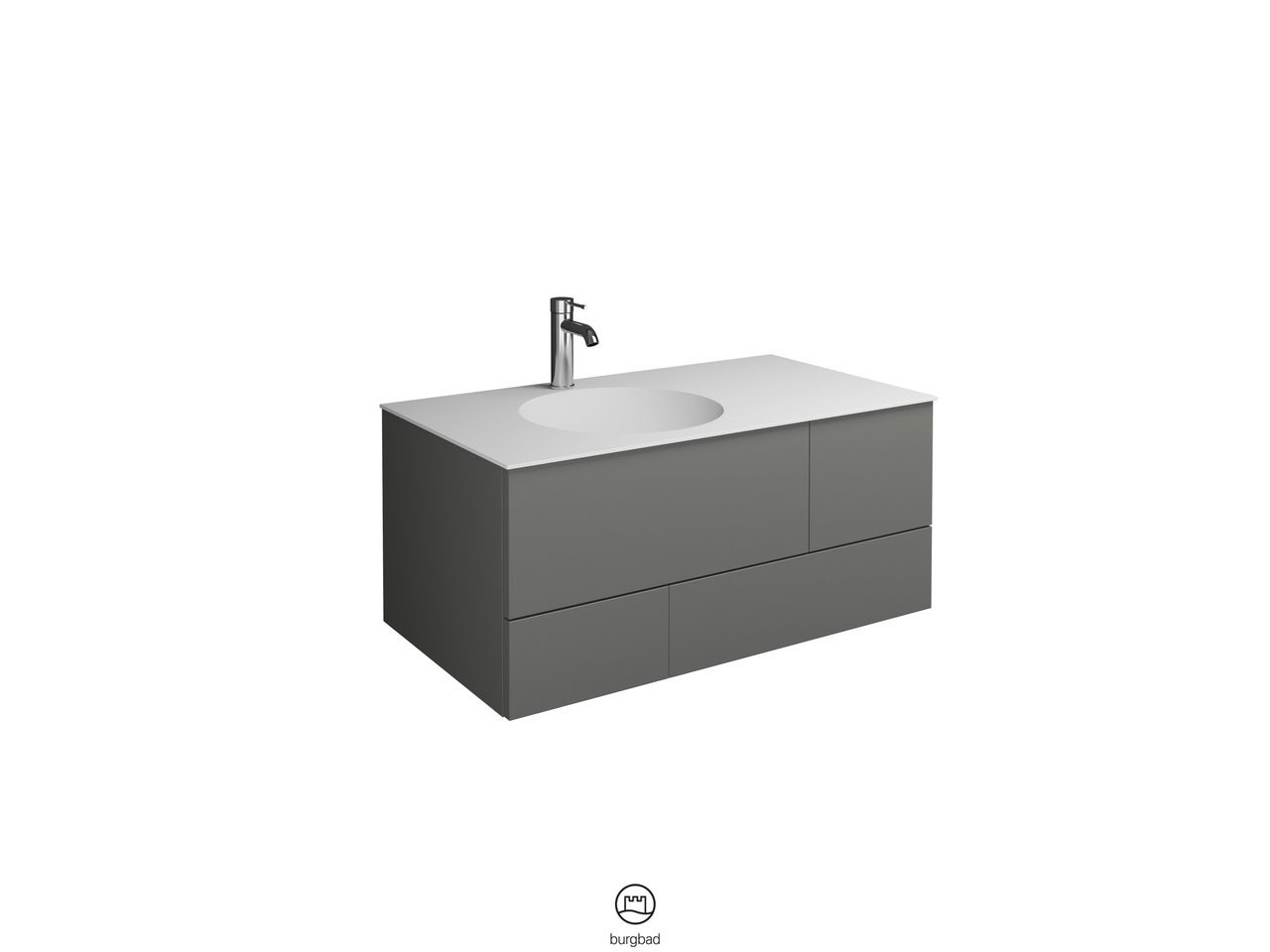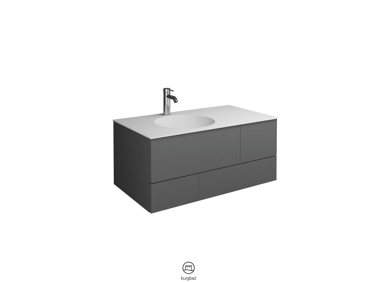 Burgbad Mineralguss Waschtisch-Unterschrank-Set Coco 90,6 x 40,6 x 50,5 cm, Lackiert Matt, 2 Schubladen