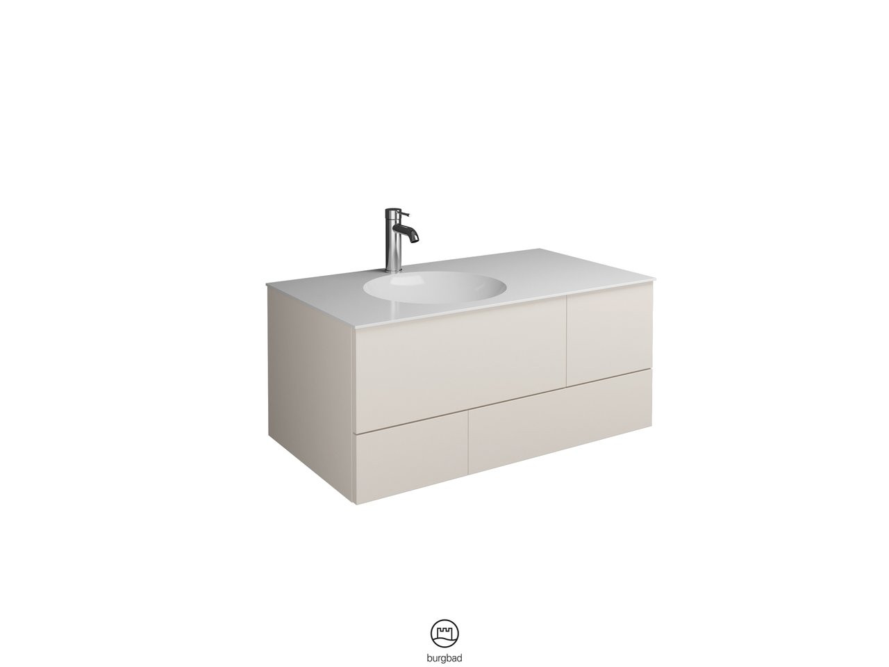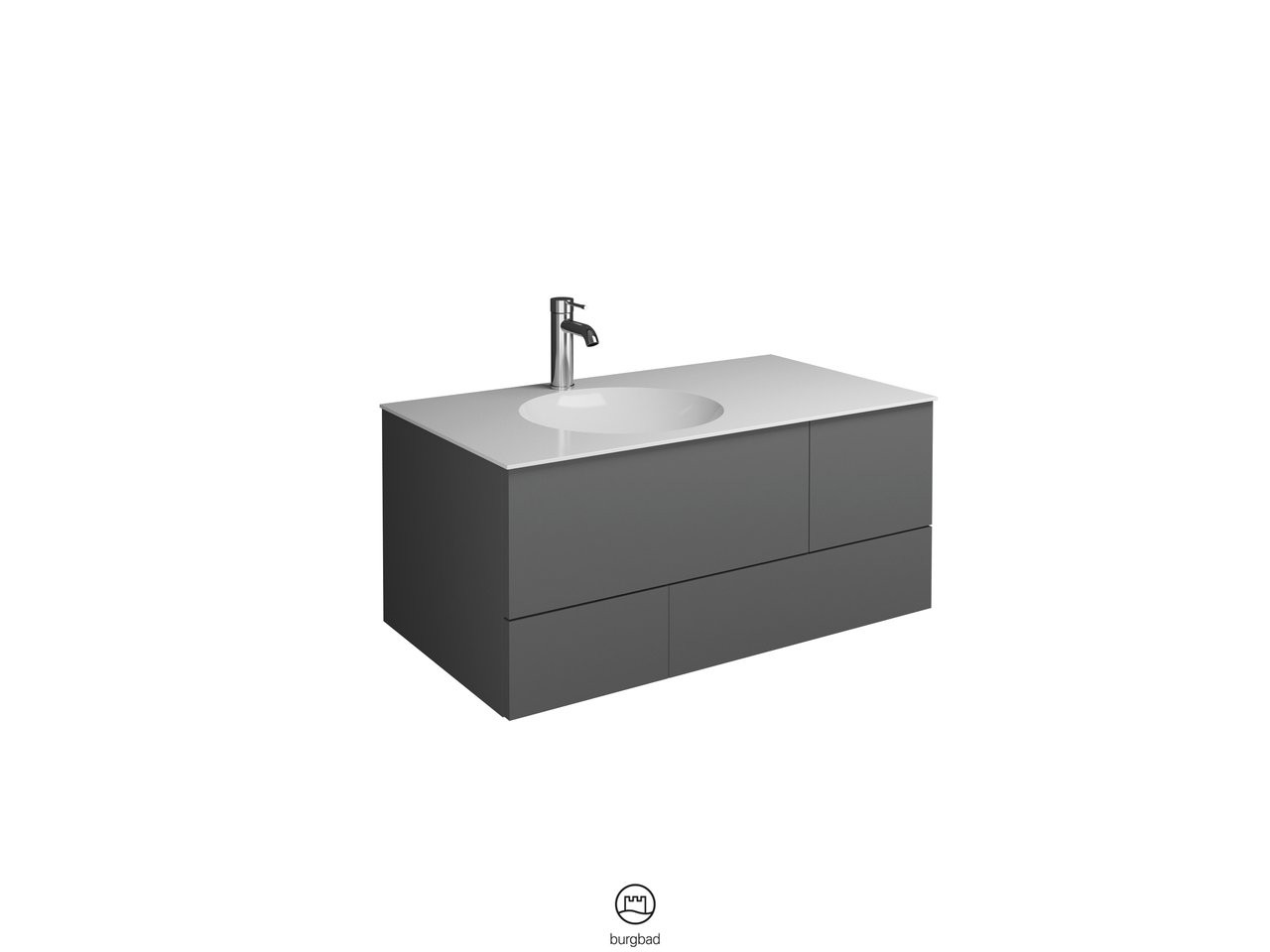 Burgbad Mineralguss Waschtisch-Unterschrank-Set Coco 90,6 x 40,6 x 50,5 cm, Lackiert Hochglanz, 2 Schubladen W510511
