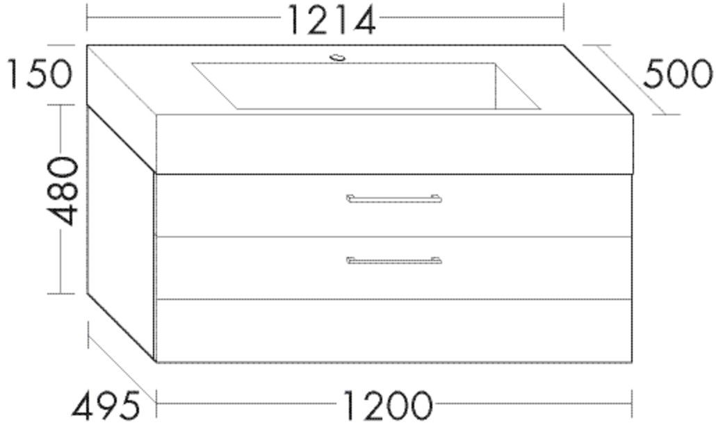 Burgbad Mineralguss Waschtisch-Unterschrank-Set Crono 121,4 x 63 x 50 cm, Lackiert Hochglanz, 2 Auszüge W509452