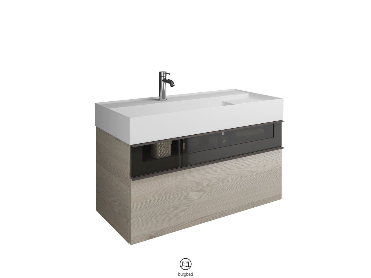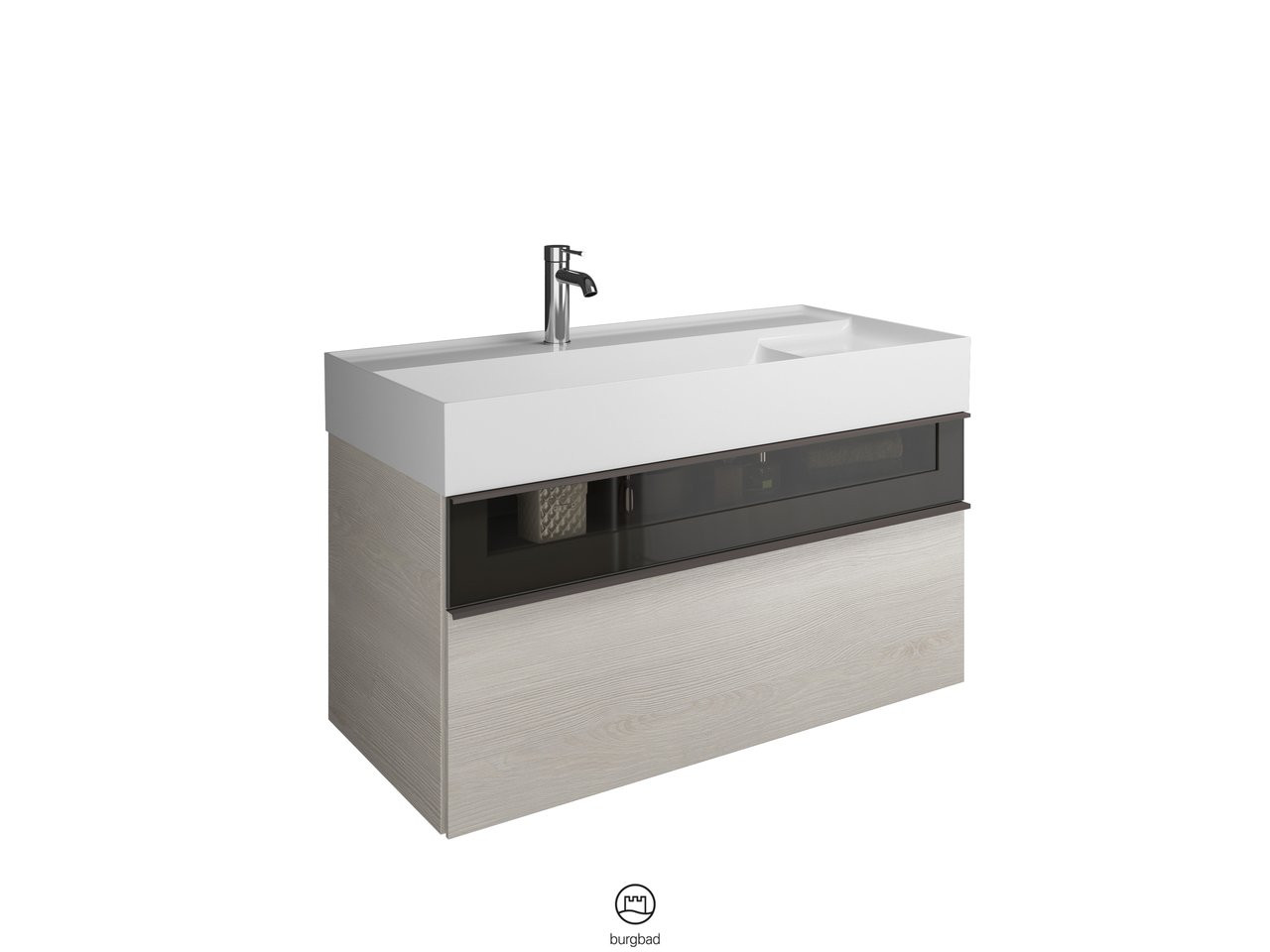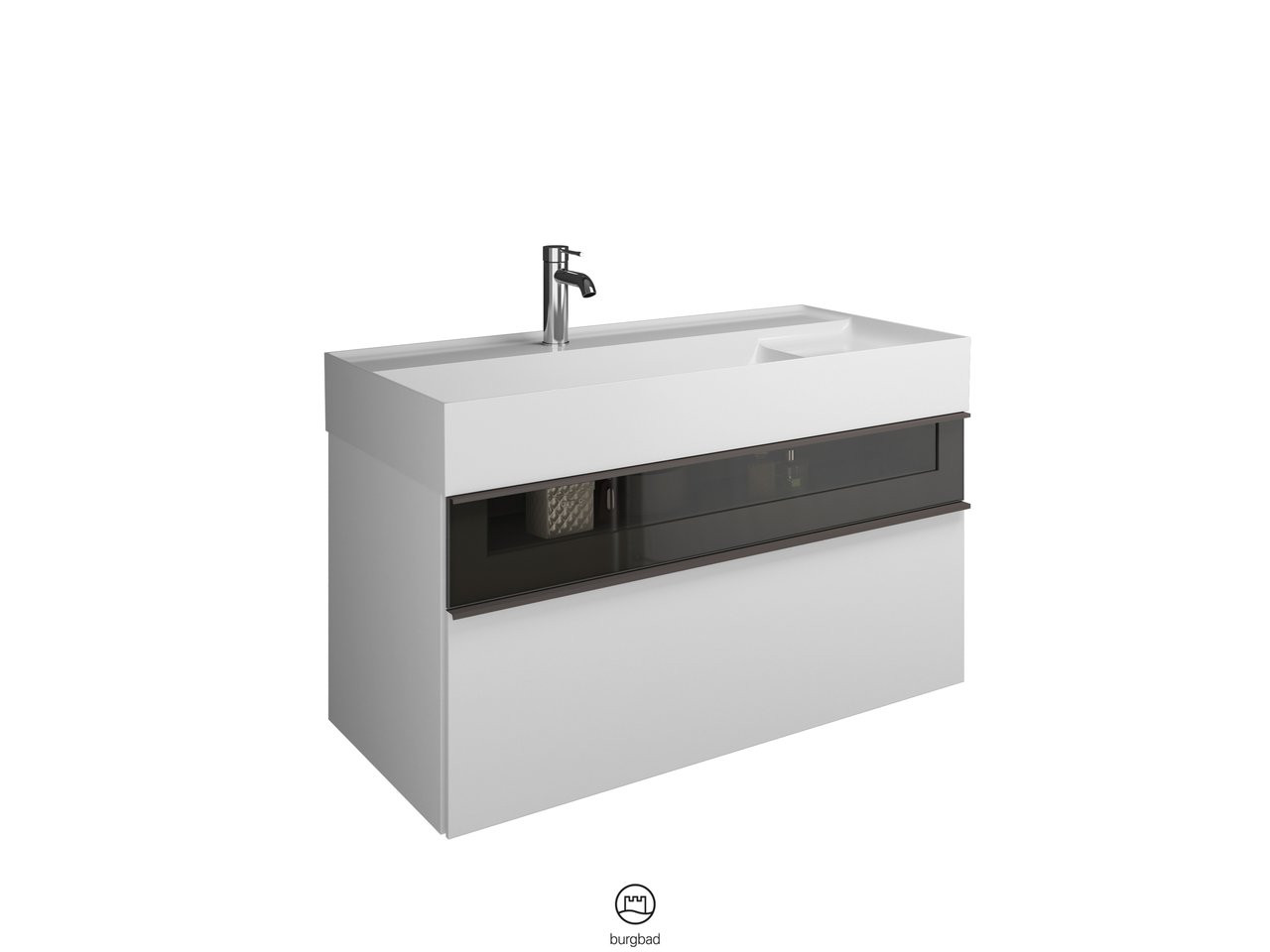 Burgbad Mineralguss Waschtisch-Unterschrank Set Yumo 101,5 x 48 x 47 cm, Acryl, 1 Schublade/Auszug, Ablage rechts, Waschtisch weiß W507778