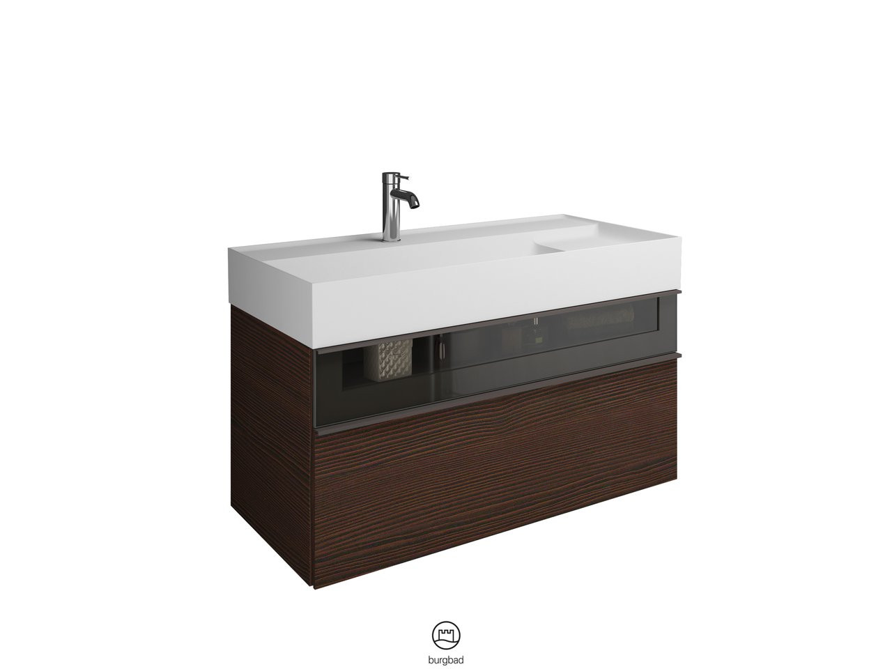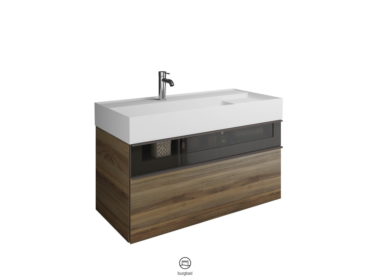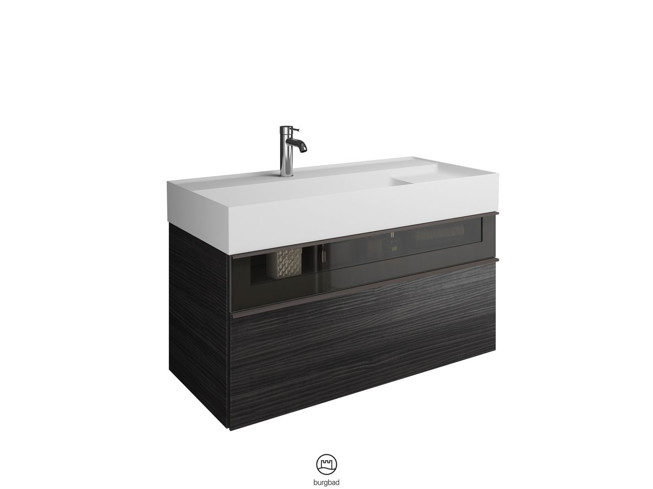 Burgbad Mineralguss Waschtisch-Unterschrank Set Yumo 101,5 x 48 x 47 cm, Acryl, 1 Schublade/Auszug, Ablage rechts, Waschtisch weiß W507778