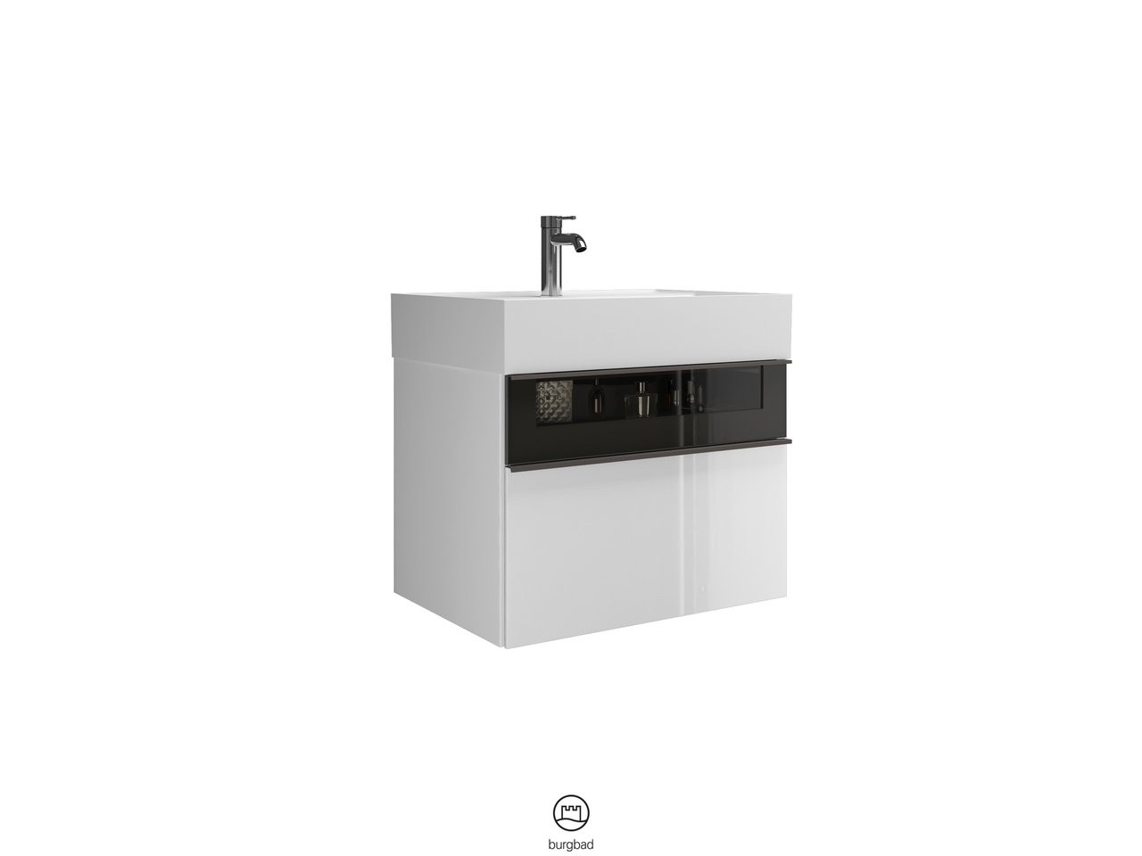 Burgbad Mineralguss Waschtisch-Unterschrank Set Yumo 66,5x61x47cm, 1 Schublade/Auszug, Waschtisch weiß, Acryl W507772