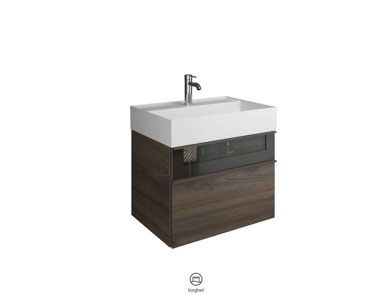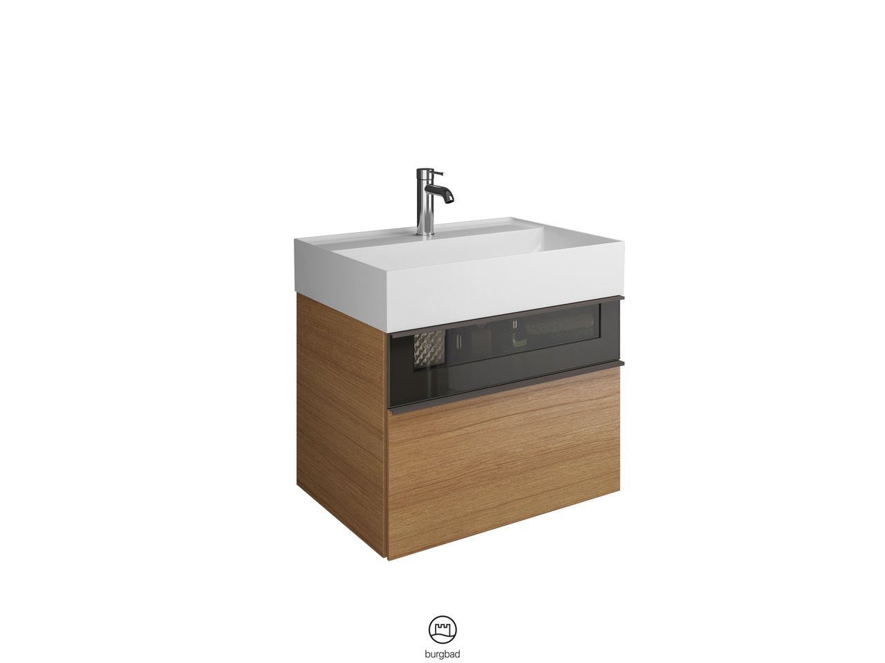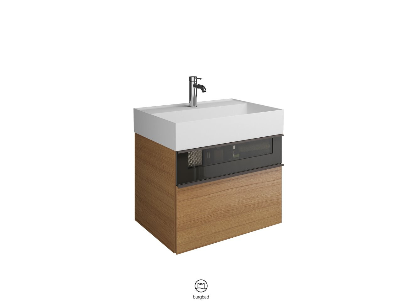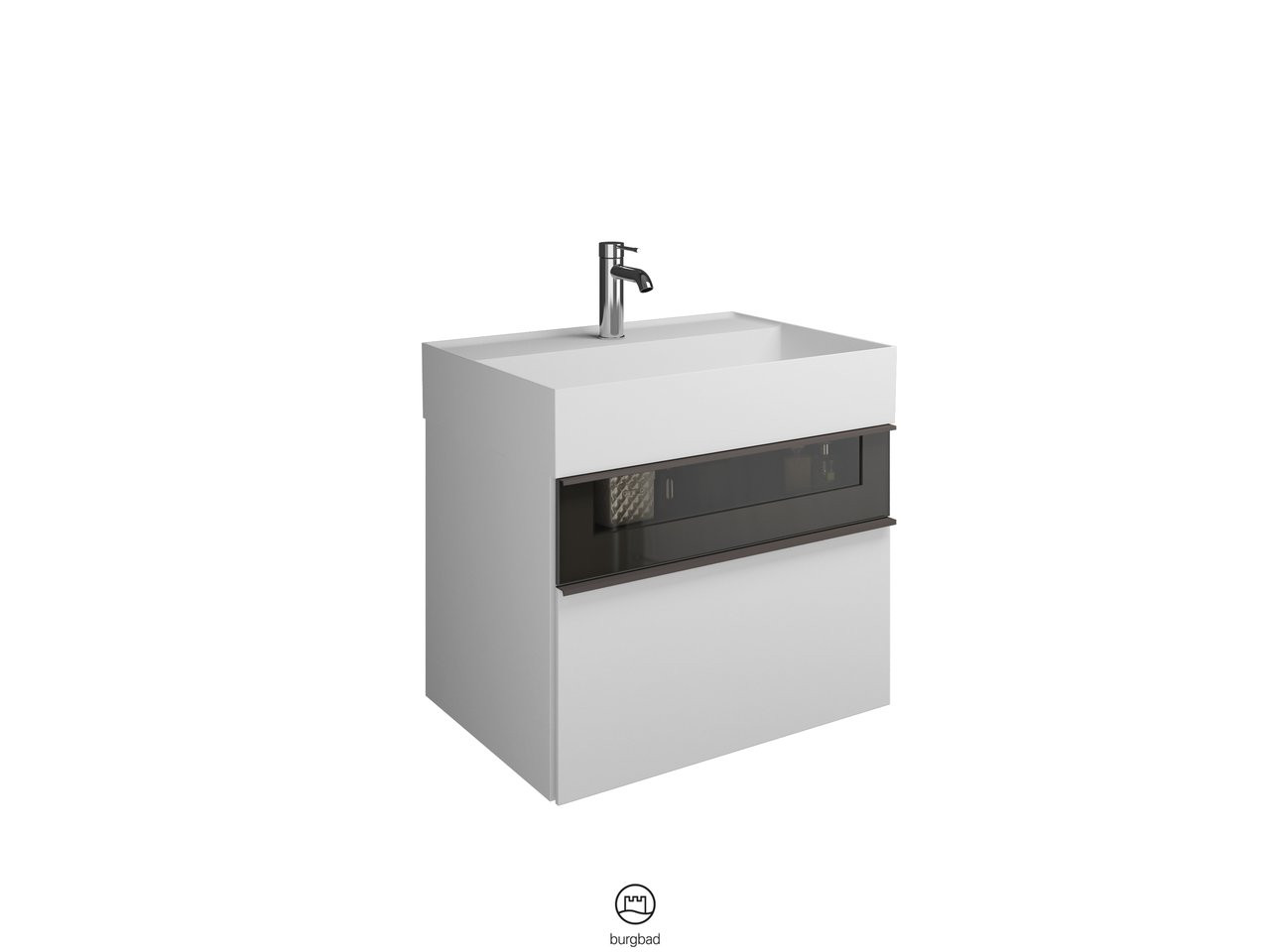 Burgbad Mineralguss Waschtisch-Unterschrank Set Yumo 66,5x61x47cm, 1 Schublade/Auszug, Waschtisch weiß, Melamin