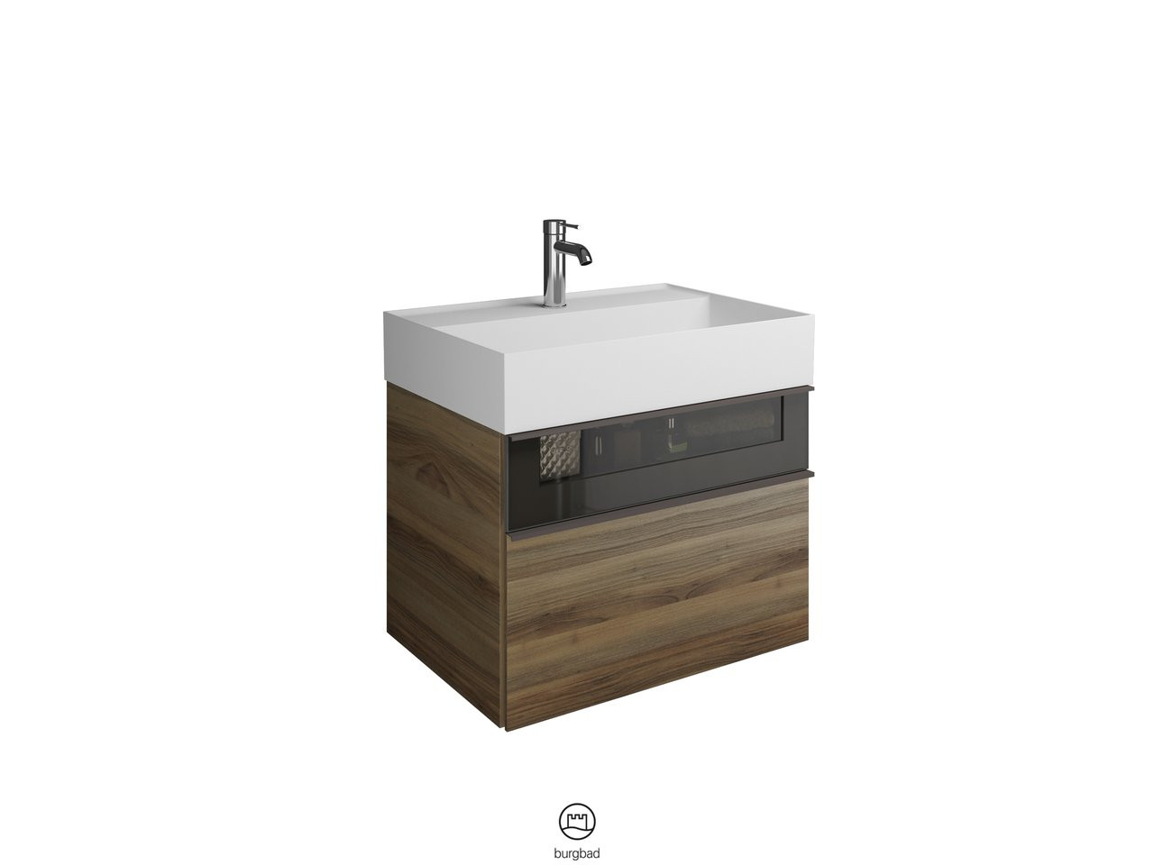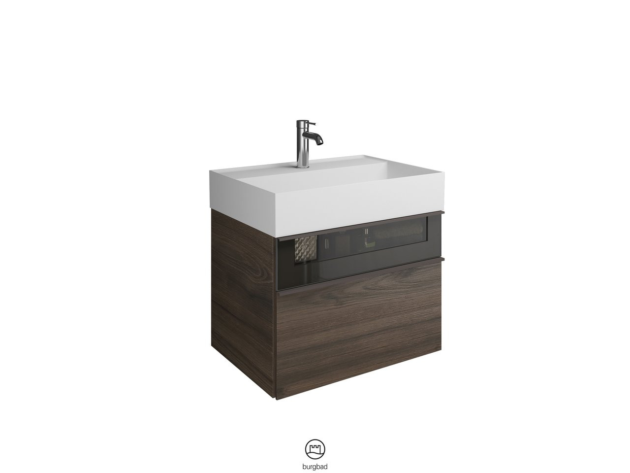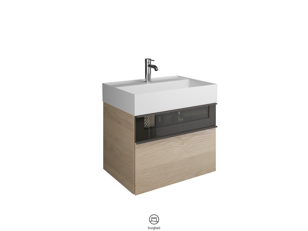 Burgbad Mineralguss Waschtisch-Unterschrank Set Yumo 66,5x61x47cm, 1 Schublade/Auszug, Waschtisch weiß, Melamin