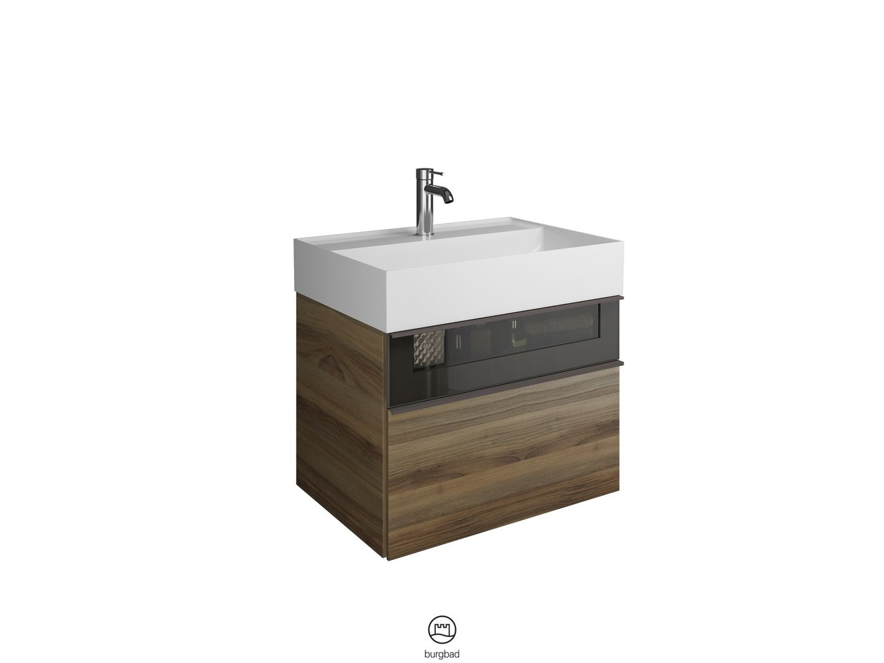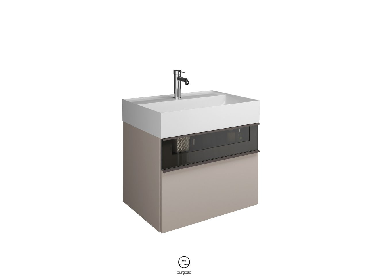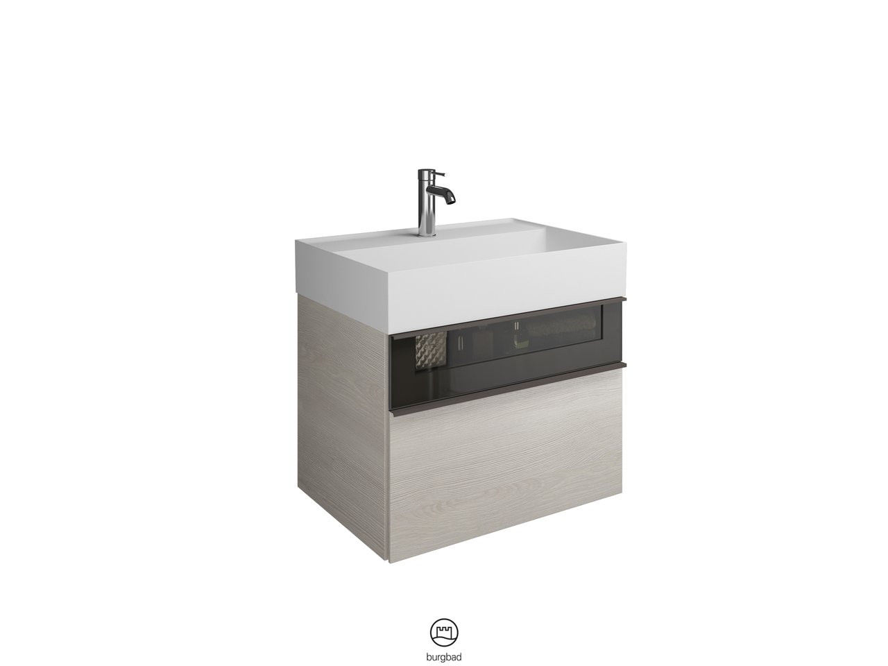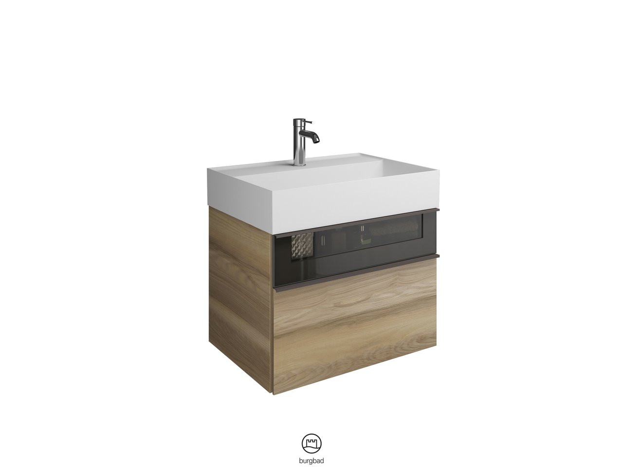 Burgbad Mineralguss Waschtisch-Unterschrank Set Yumo 66,5x61x47cm, 1 Schublade/Auszug, Waschtisch weiß, Melamin