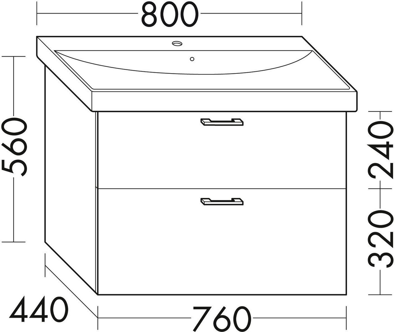 Burgbad Nurro Pure Waschtisch-Unterschrank 56x76x44cm, 1 Schublade/1 Auszug, Weiß Hochglanz
