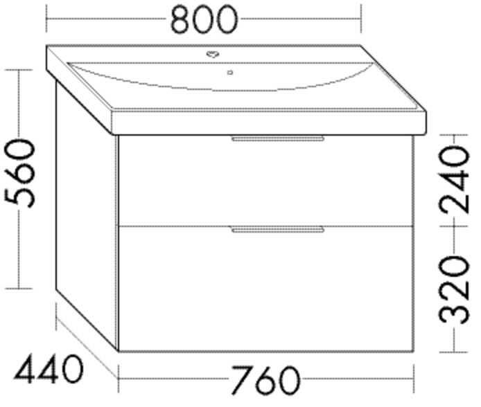 Schublade oben, mit Siphonausschnitt, Auszug unten