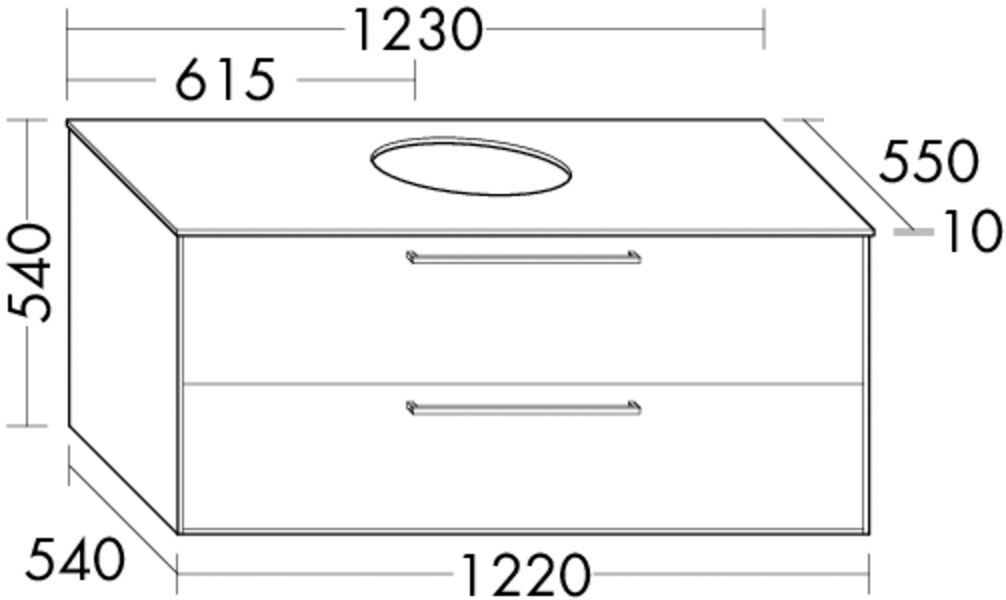 Burgbad Osera Waschtisch-Unterschrank 123x54x55cm, 2 Auszüge, Eiche Dekor Rost, Schilf Hochglanz W393436