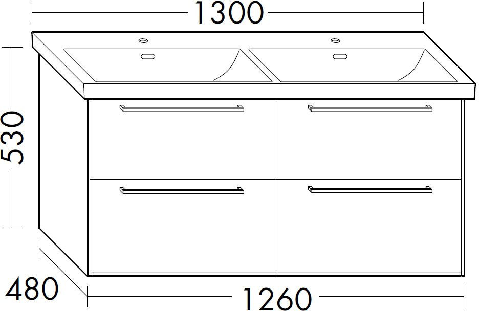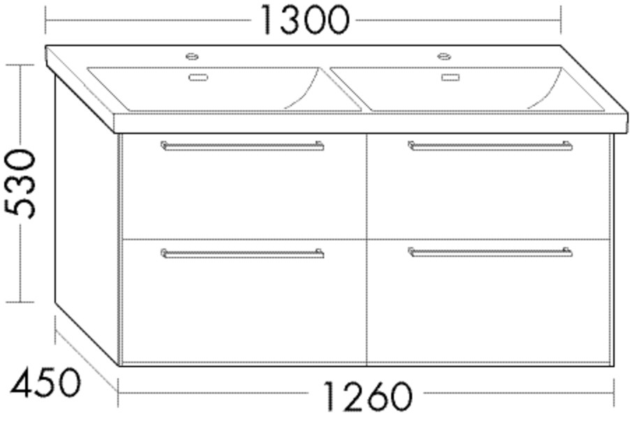 Burgbad Osera Waschtisch-Unterschrank 126x53x48cm, 2 Schubladen/2 Auszüge, Weiß matt W393296